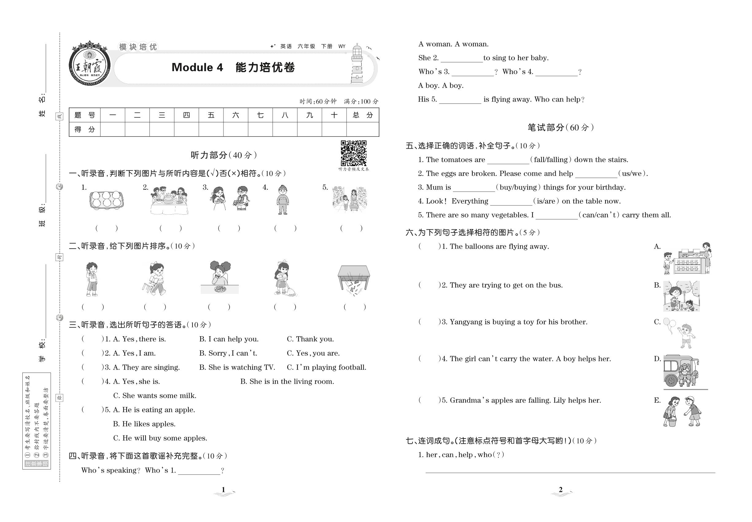2021下册六年级英语外研版 Module 4 能力培优卷