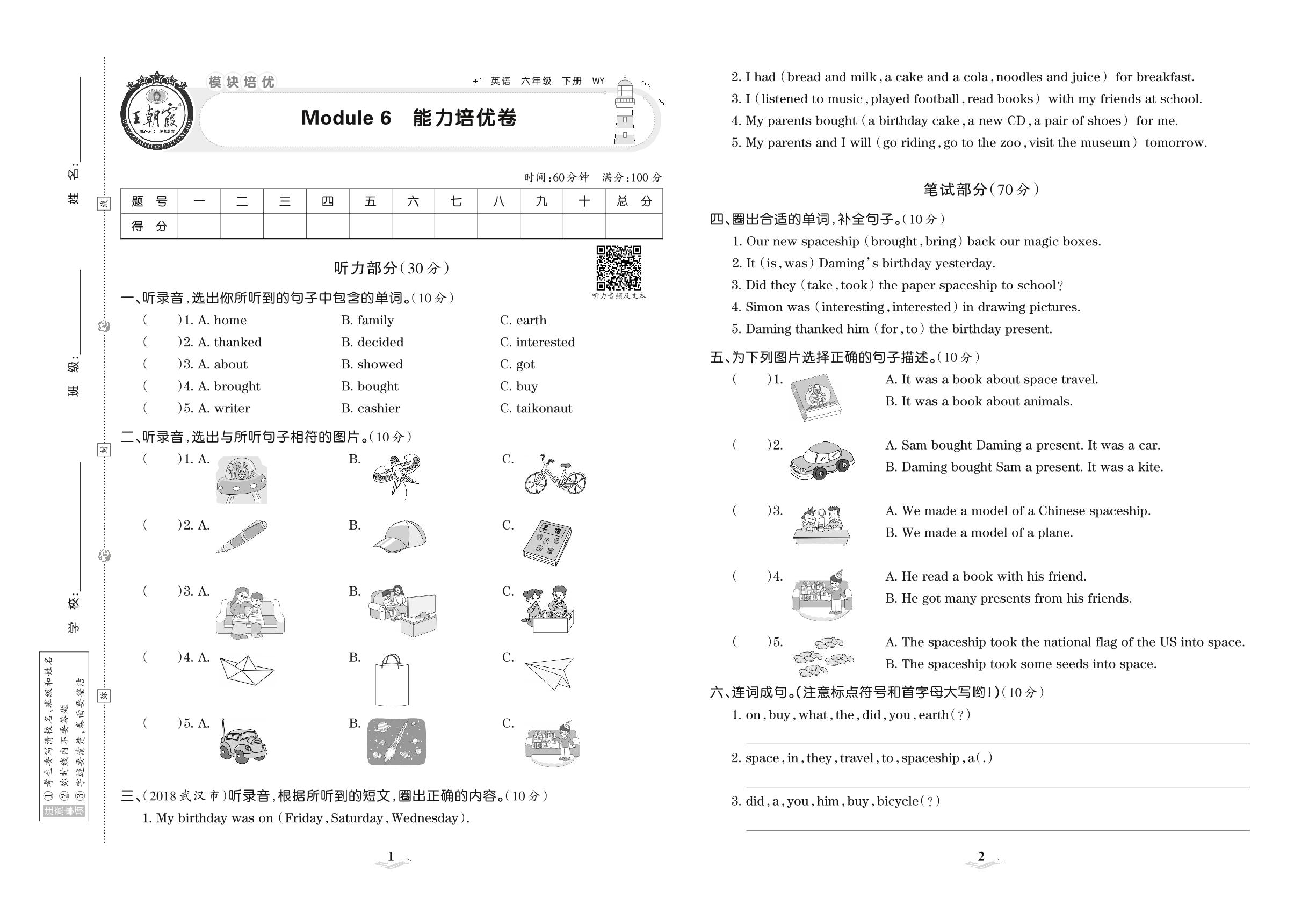 2021下册六年级英语外研版 Module 6 能力培优卷