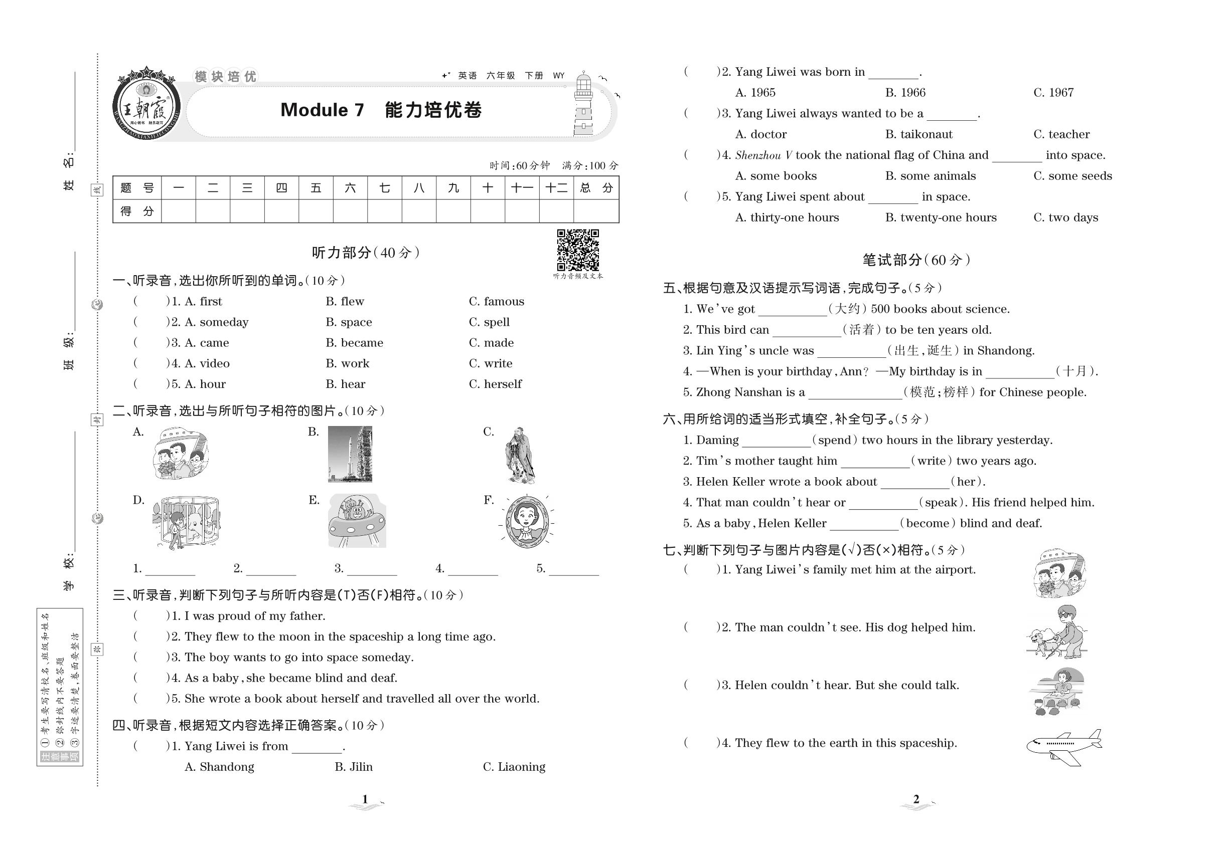 2021下册六年级英语外研版 Module 7 能力培优卷