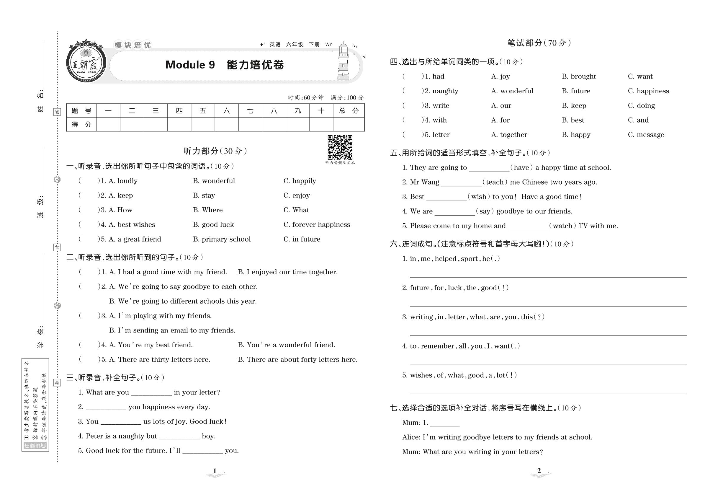 2021下册六年级英语外研版 Module 9 能力培优卷