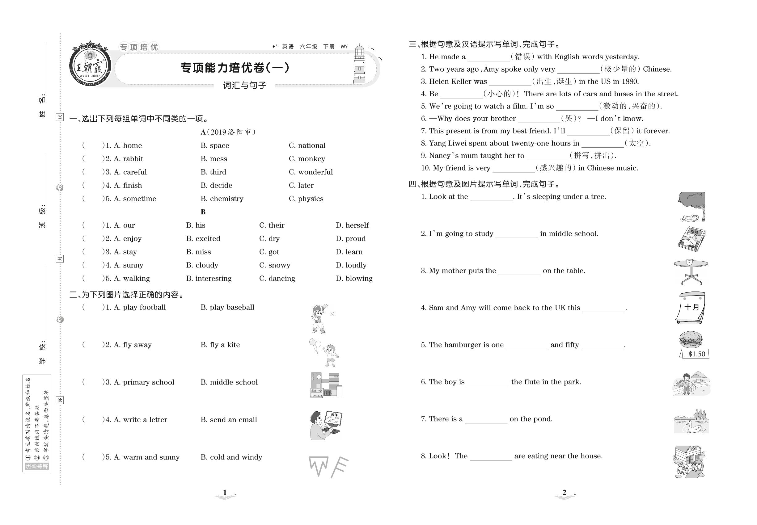2021下册六年级英语外研版 专项能力培优卷(一) 词汇与句子