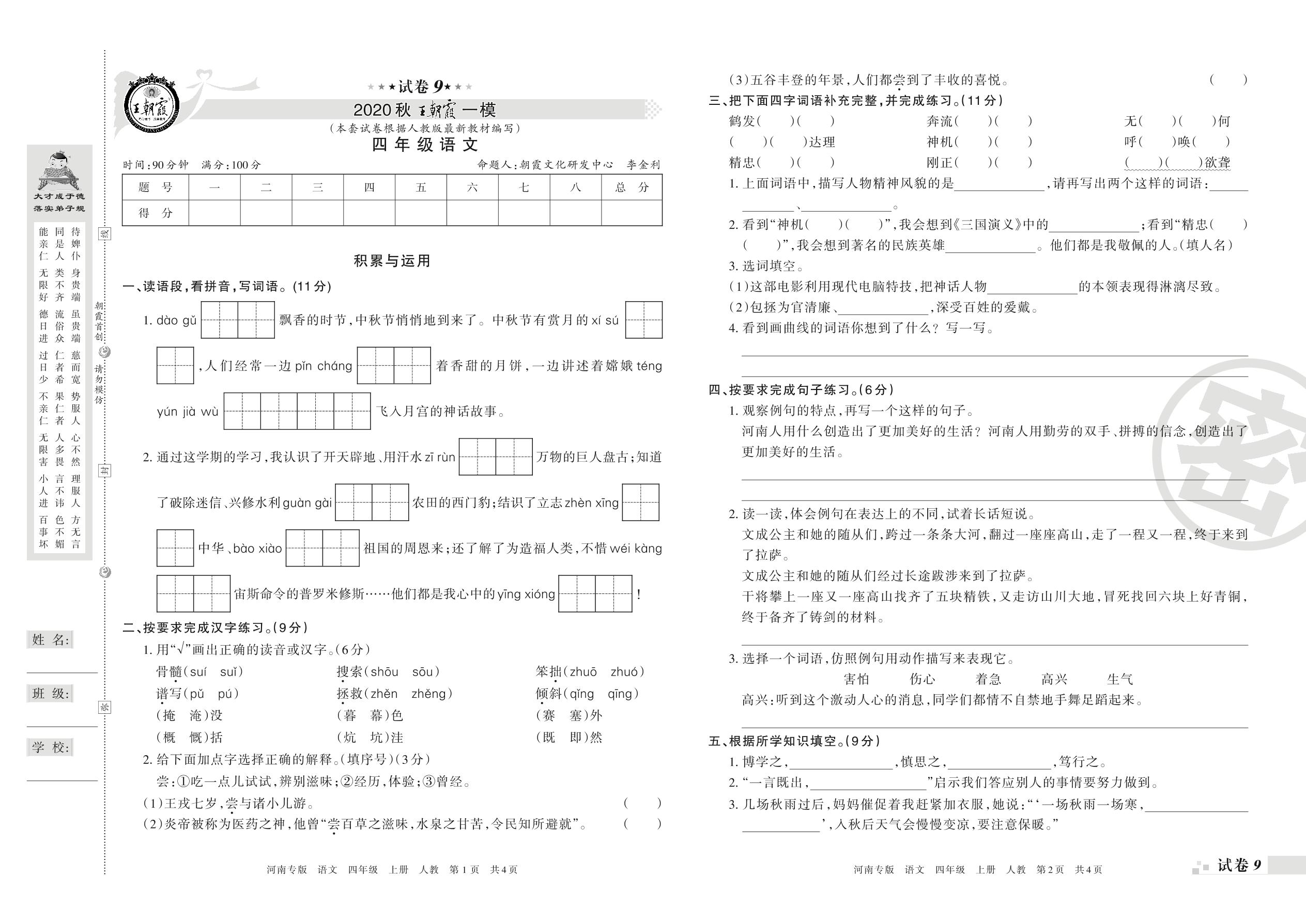 王朝霞期末模拟卷四年级上册语文(人教版)_R210801184404【9】