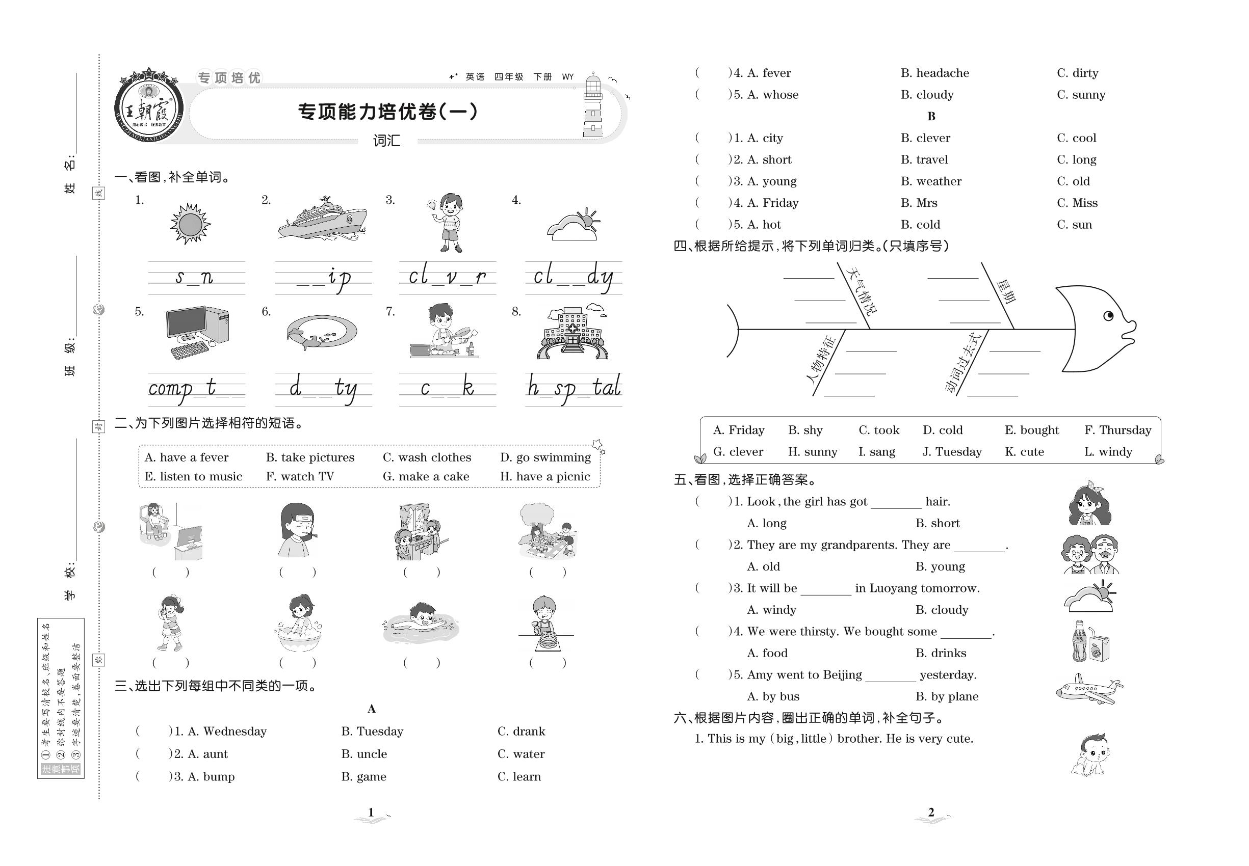 2021下册四年级英语外研版 专项能力培优卷(一) 词汇