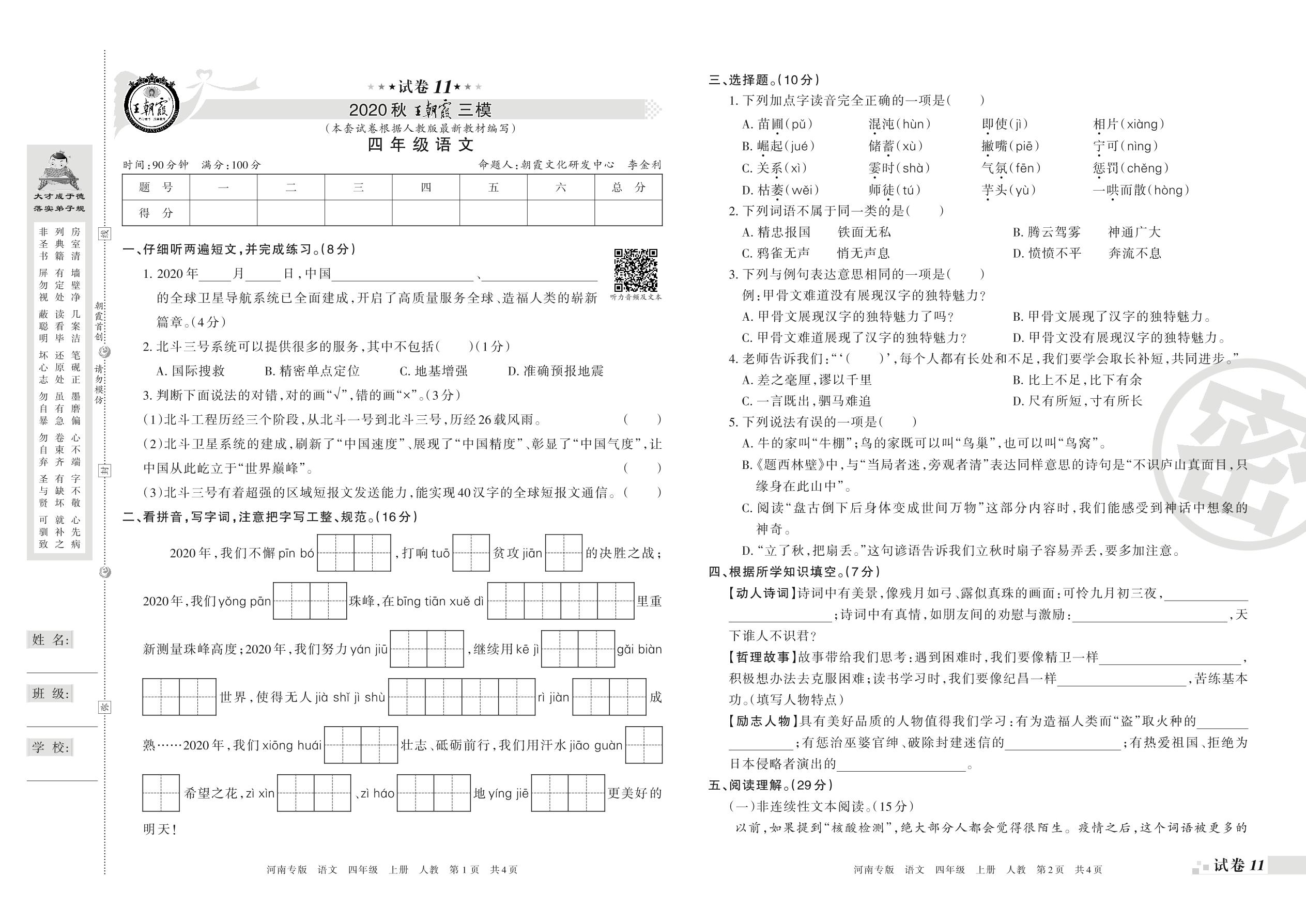 王朝霞期末模拟卷四年级上册语文(人教版)_R210801184415【11】