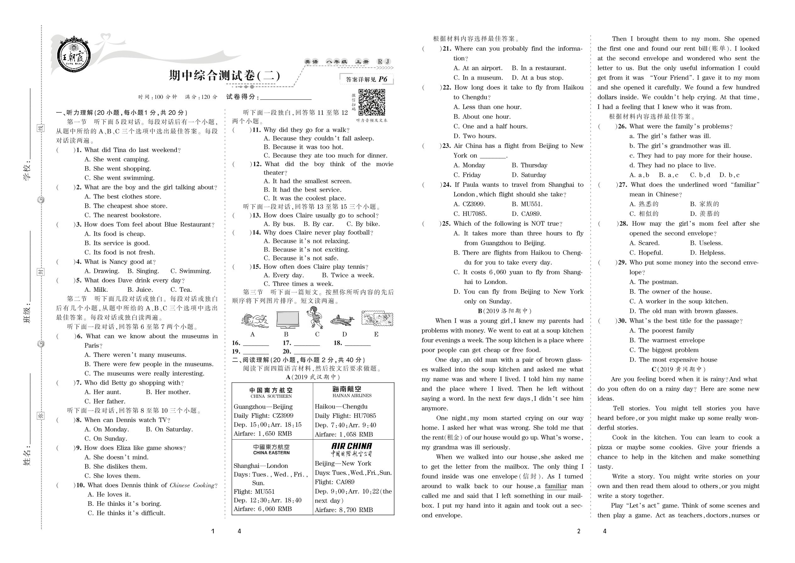 2020上册八年级英语人教版 期中综合测试卷(二)