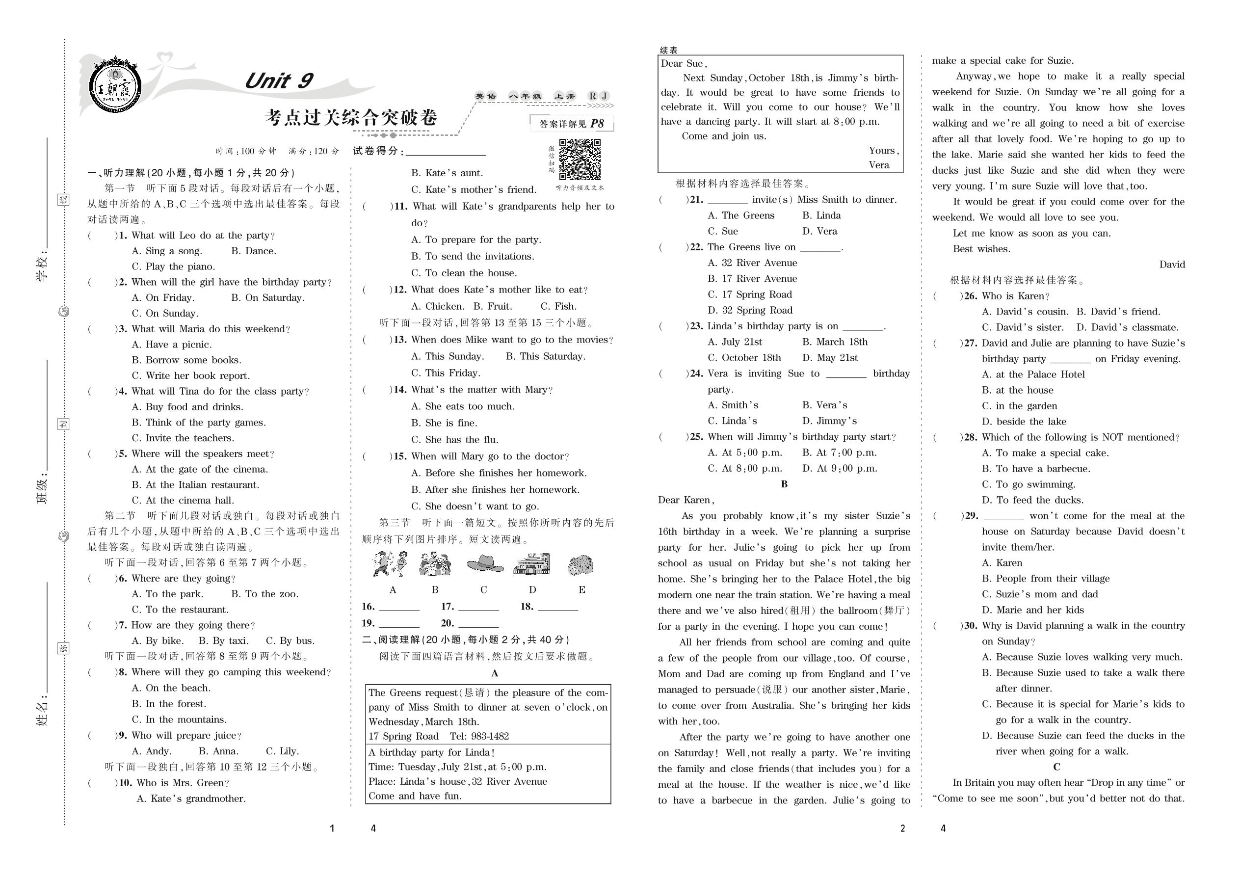 2020上册八年级英语人教版 Unit 9 考点过关综合突破卷