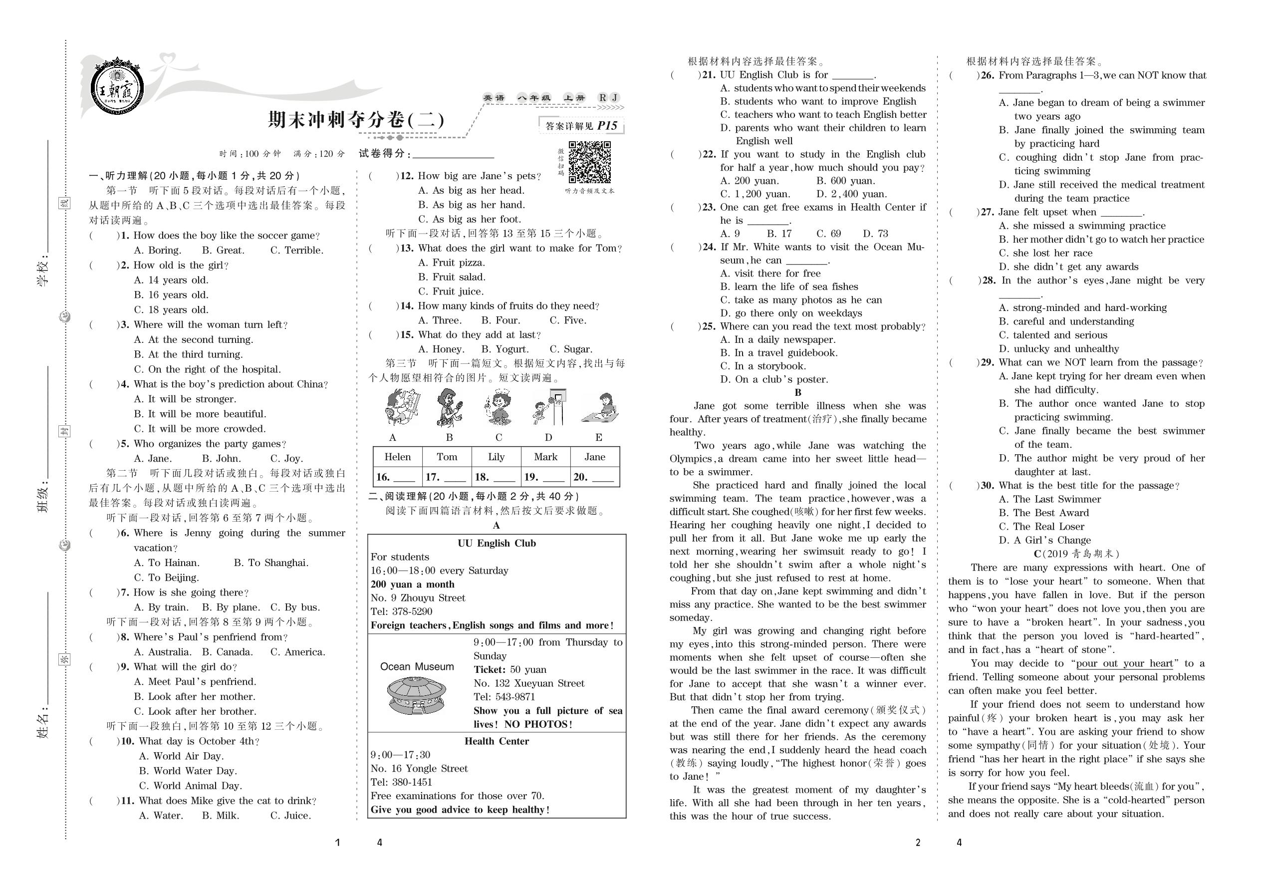 2020上册八年级英语人教版 期末冲刺夺分卷(二)