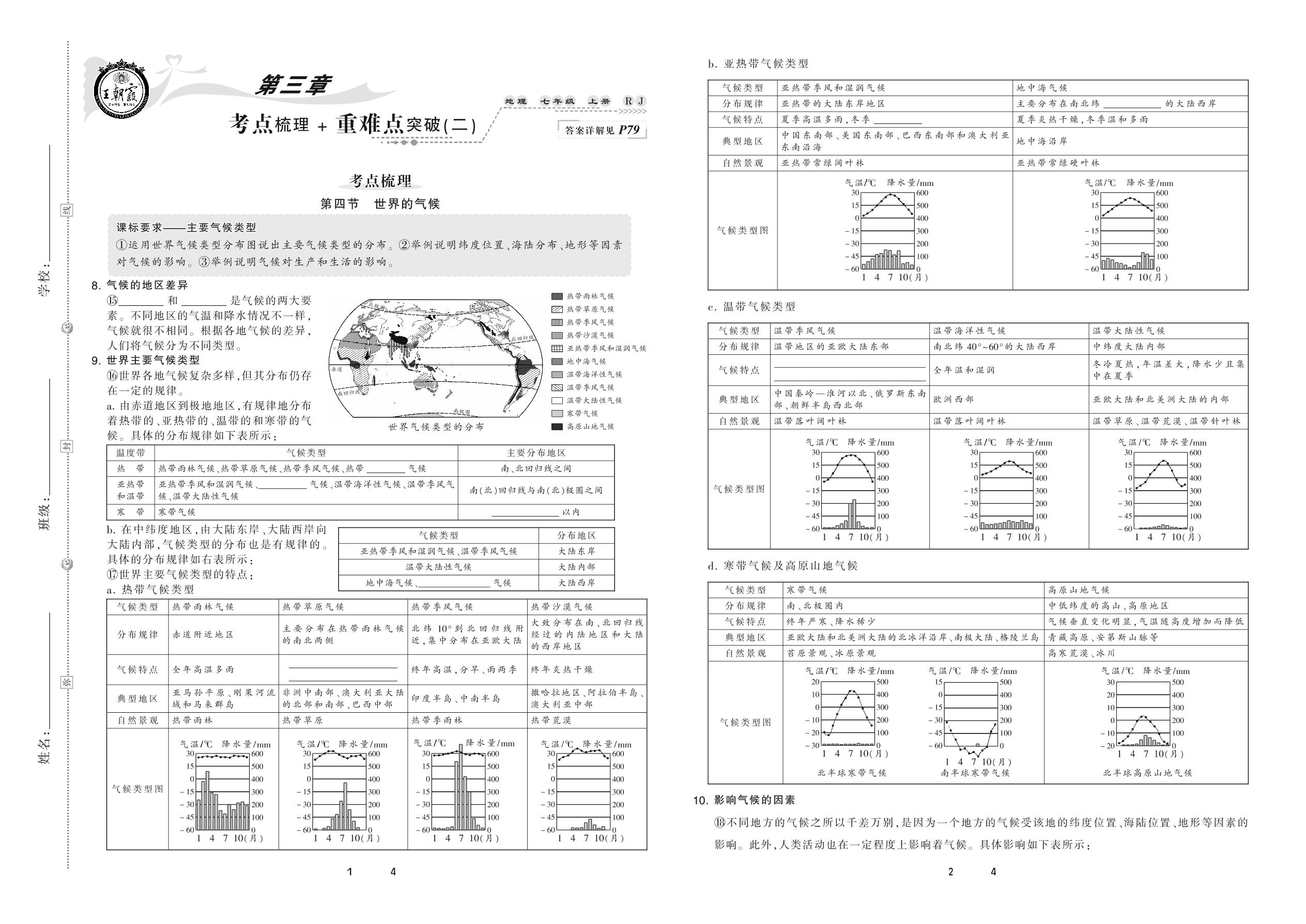 2020上册七年级地理人教版 第三章 考点梳理+重难点突破(二)