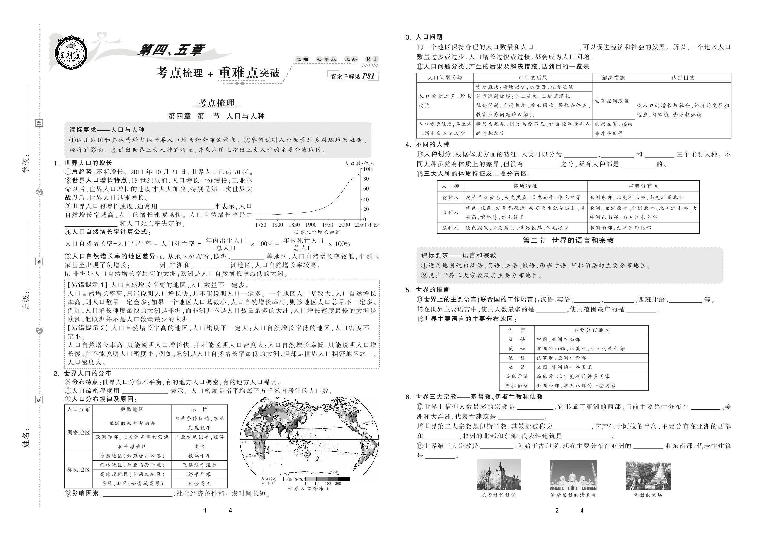 2020上册七年级地理人教版 第四、五章 考点梳理+重难点突破