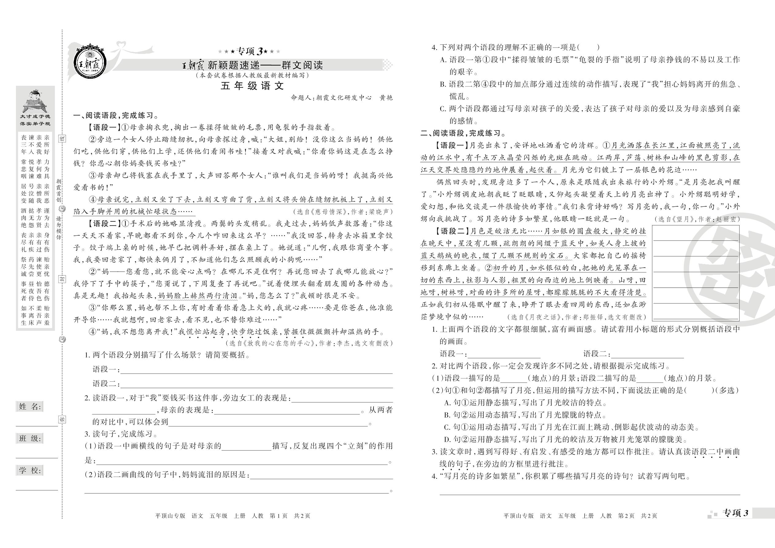 王朝霞期末专项卷——群文阅读、古诗文阅读五年级上册语文(人教版)_R210801184434【0】