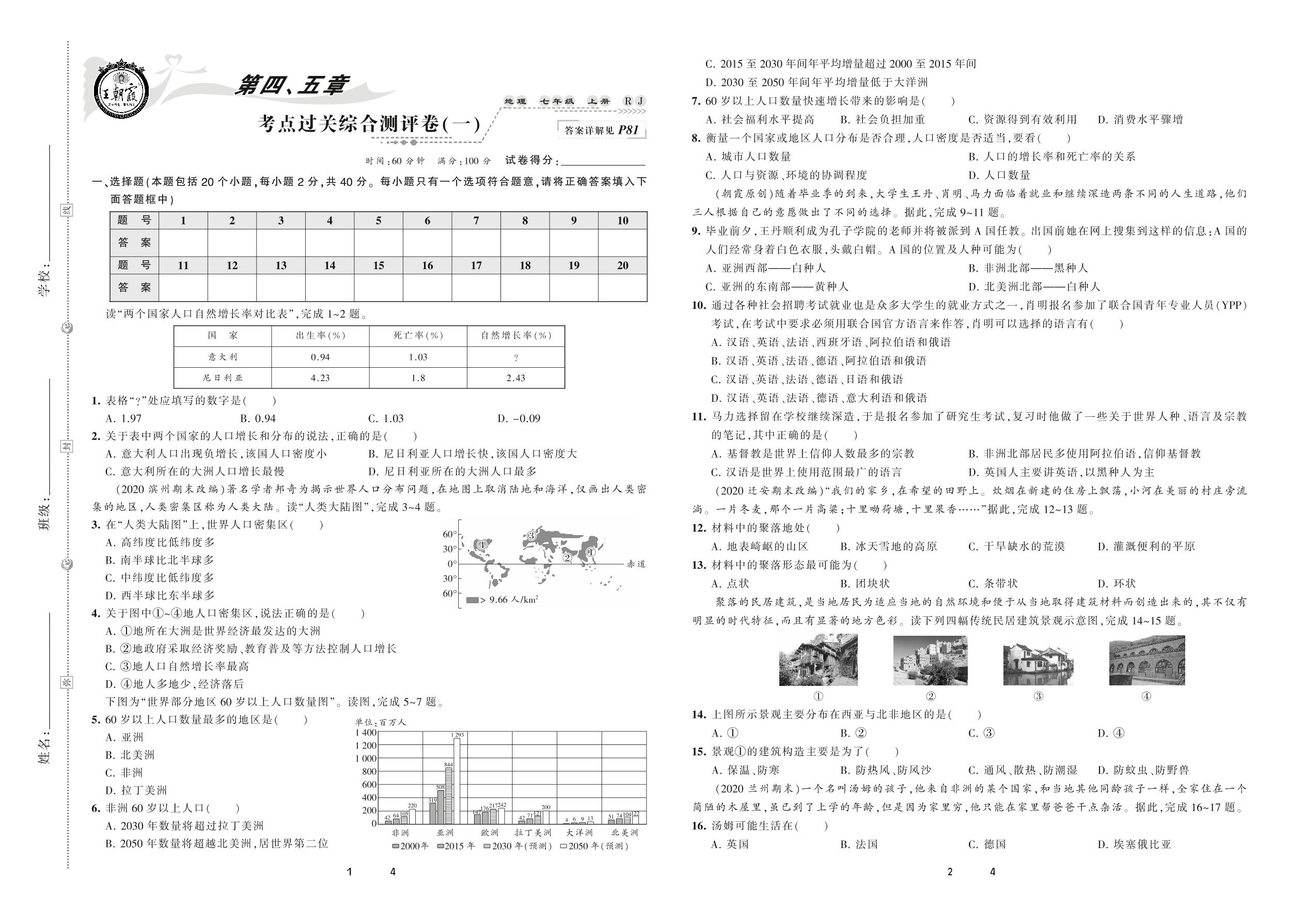 2020上册七年级地理人教版 第四、五章 考点过关综合测评卷(一)