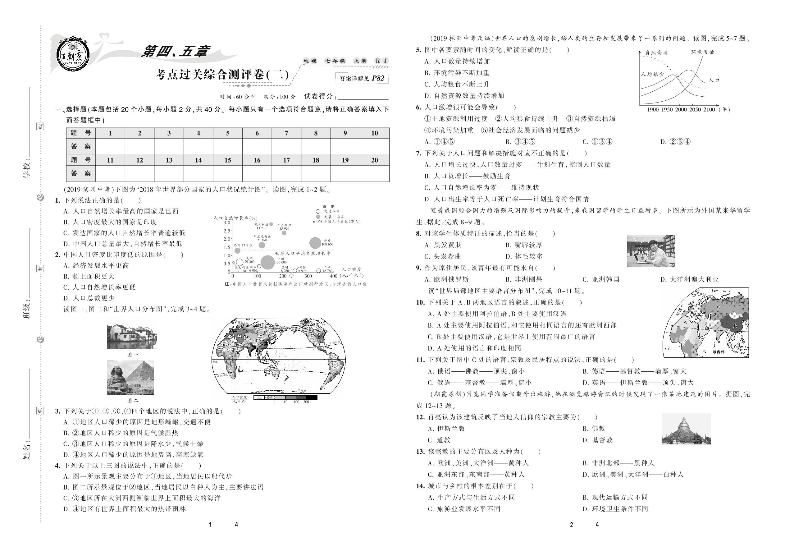 2020上册七年级地理人教版 第四、五章 考点过关综合测评卷(二)