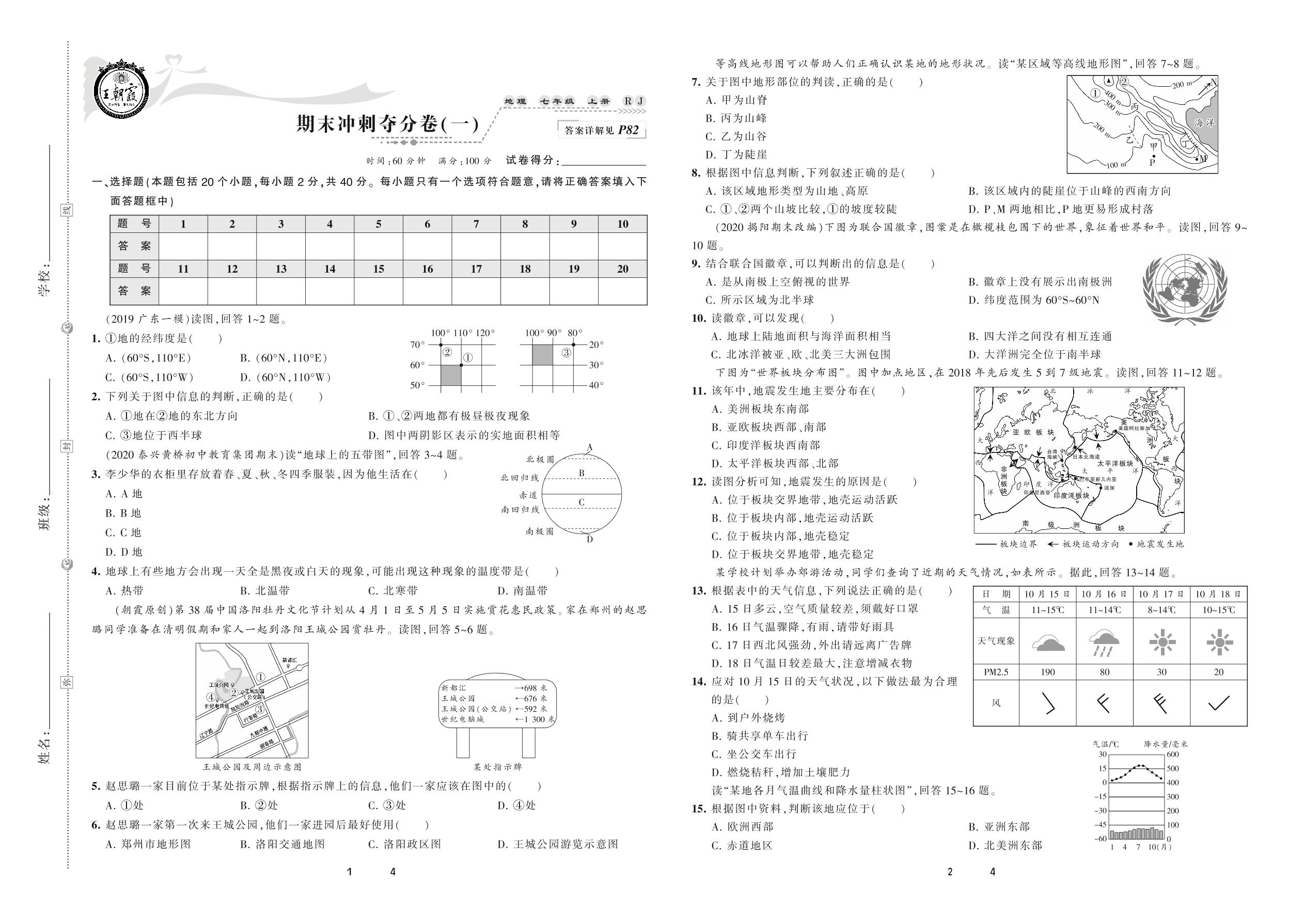 2020上册七年级地理人教版 期末冲刺夺分卷(一)