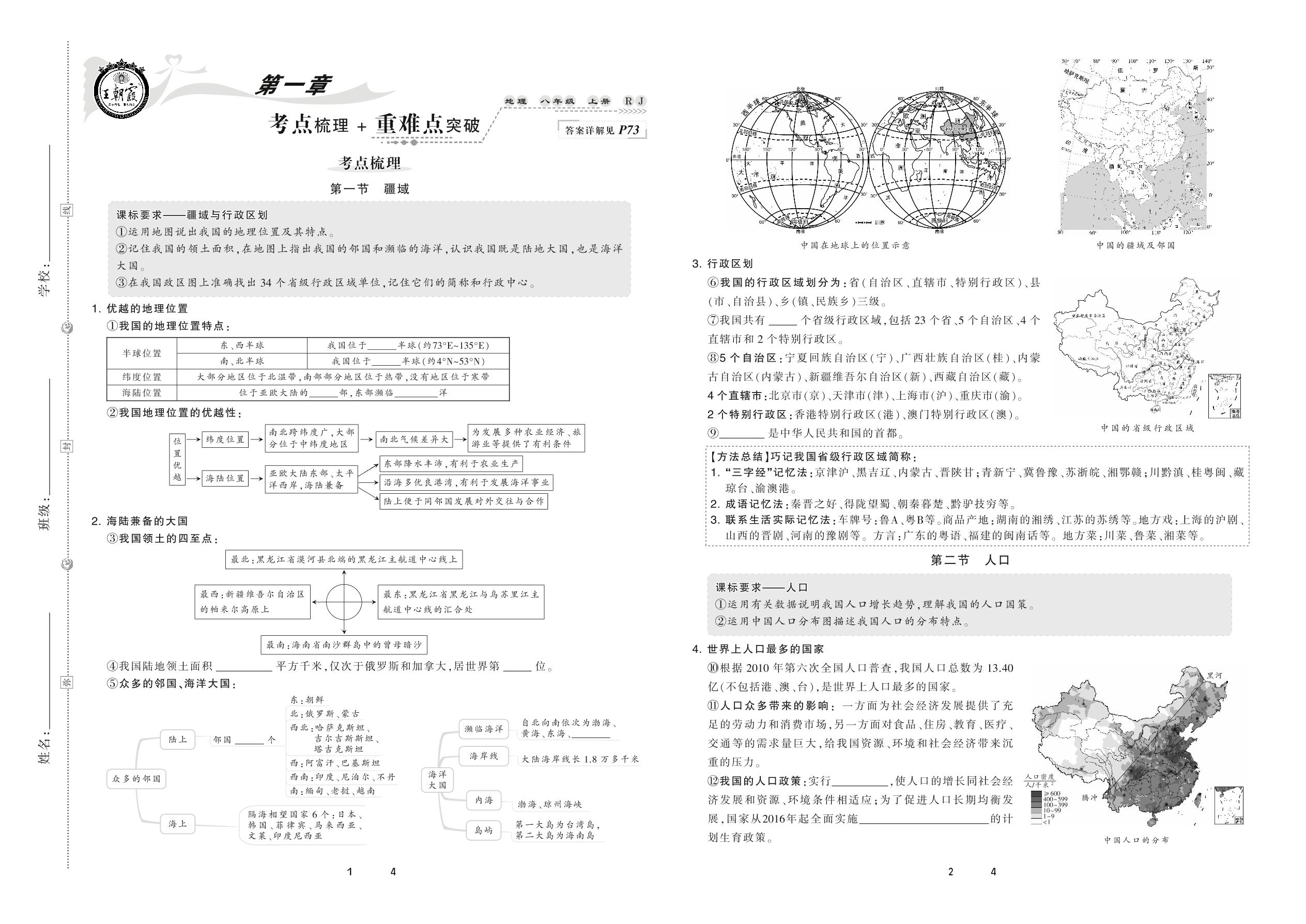 2020上册八年级地理人教版 第一章 考点梳理+重难点突破