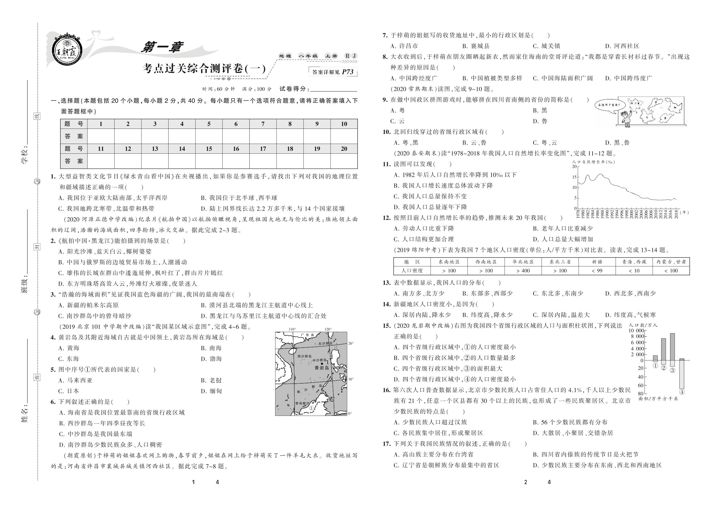 2020上册八年级地理人教版 第一章 考点过关综合测评卷(一)