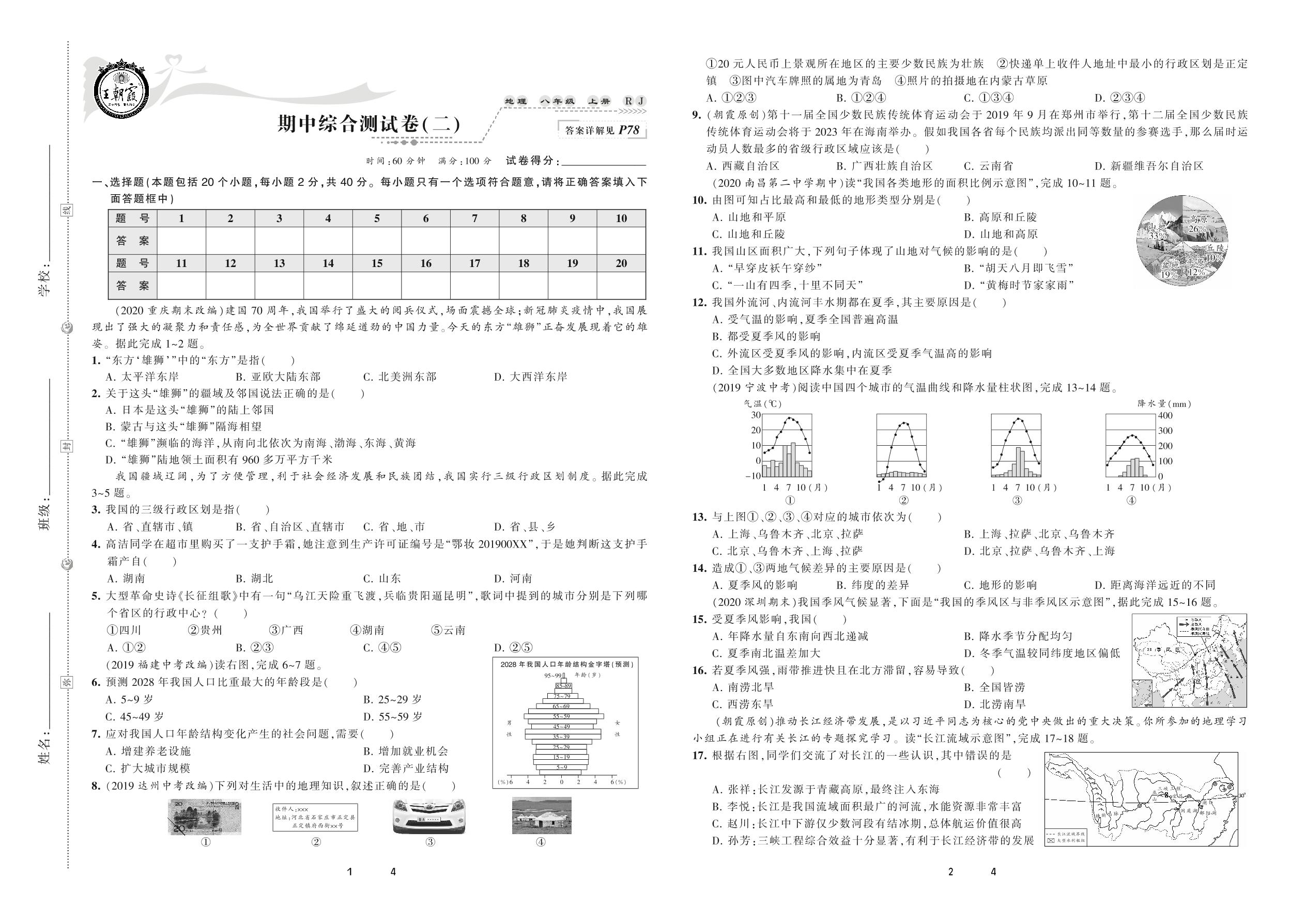 2020上册八年级地理人教版 期中综合测试卷(二)