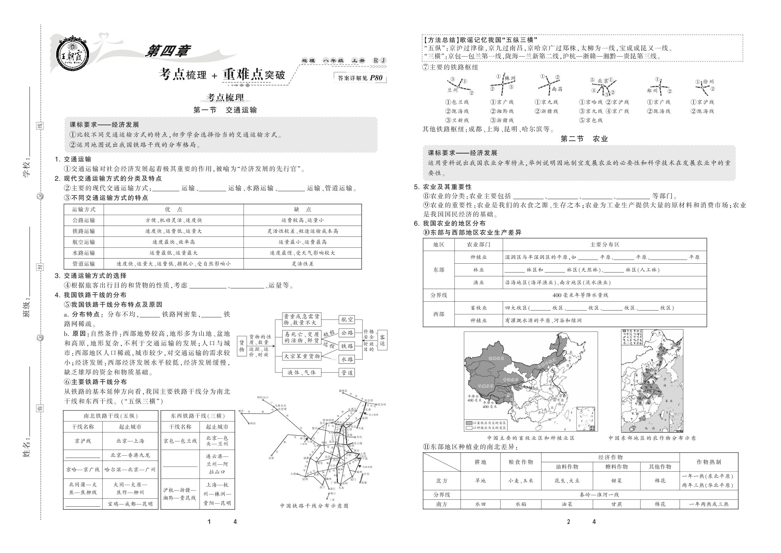 2020上册八年级地理人教版 第四章 考点梳理+重难点突破
