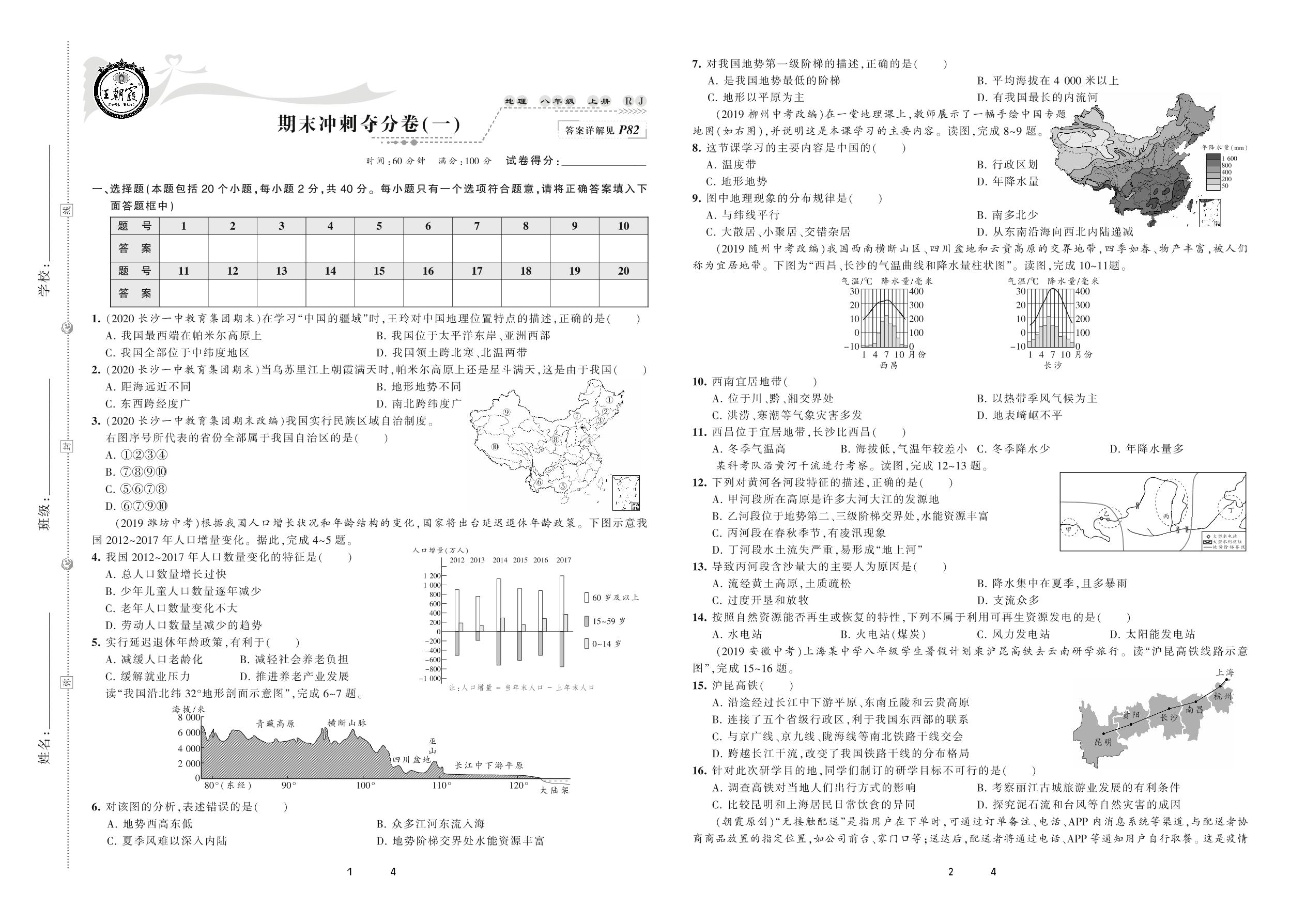 2020上册八年级地理人教版 期末冲刺夺分卷(一)