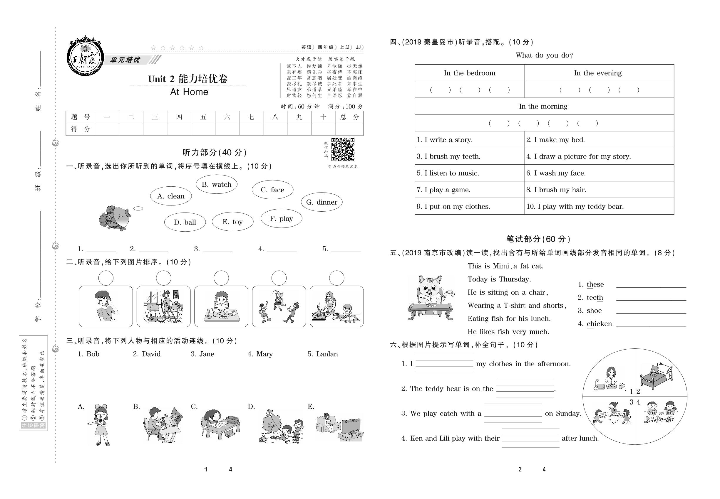 2020上册四年级英语冀教版 Unit 2 能力培优卷