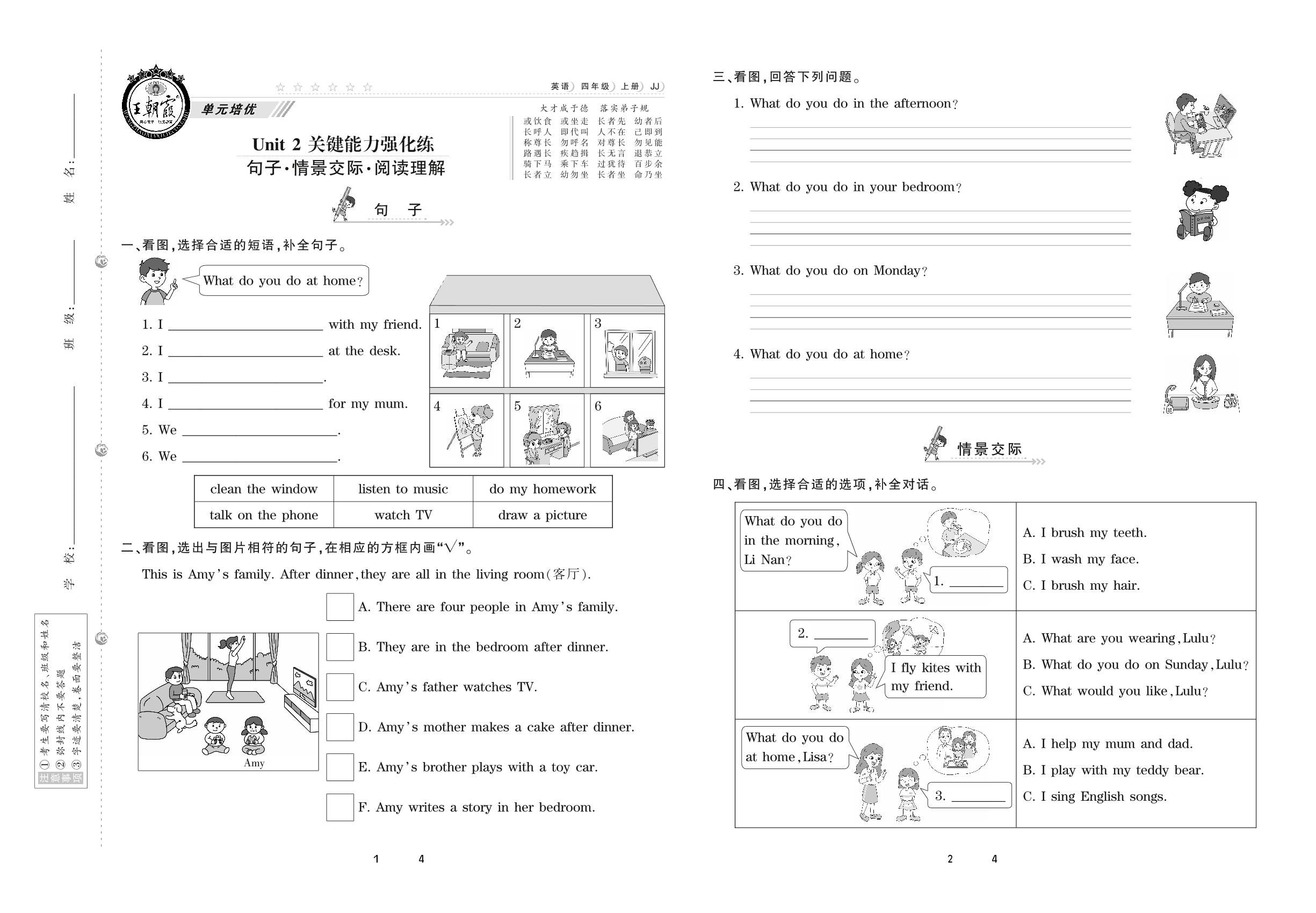2020上册四年级英语冀教版 Unit 2 关键能力强化练