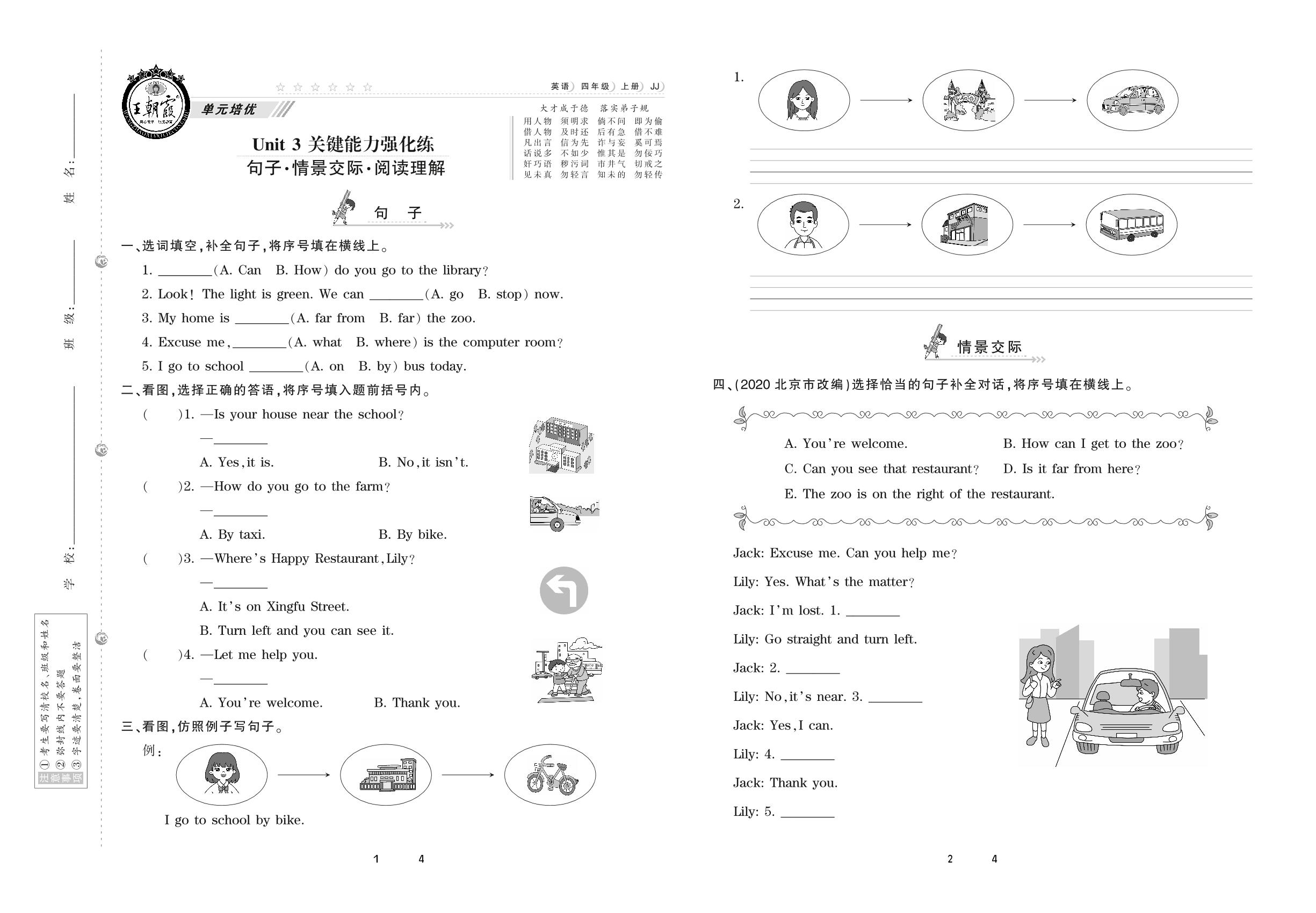 2020上册四年级英语冀教版 Unit 3 关键能力强化练