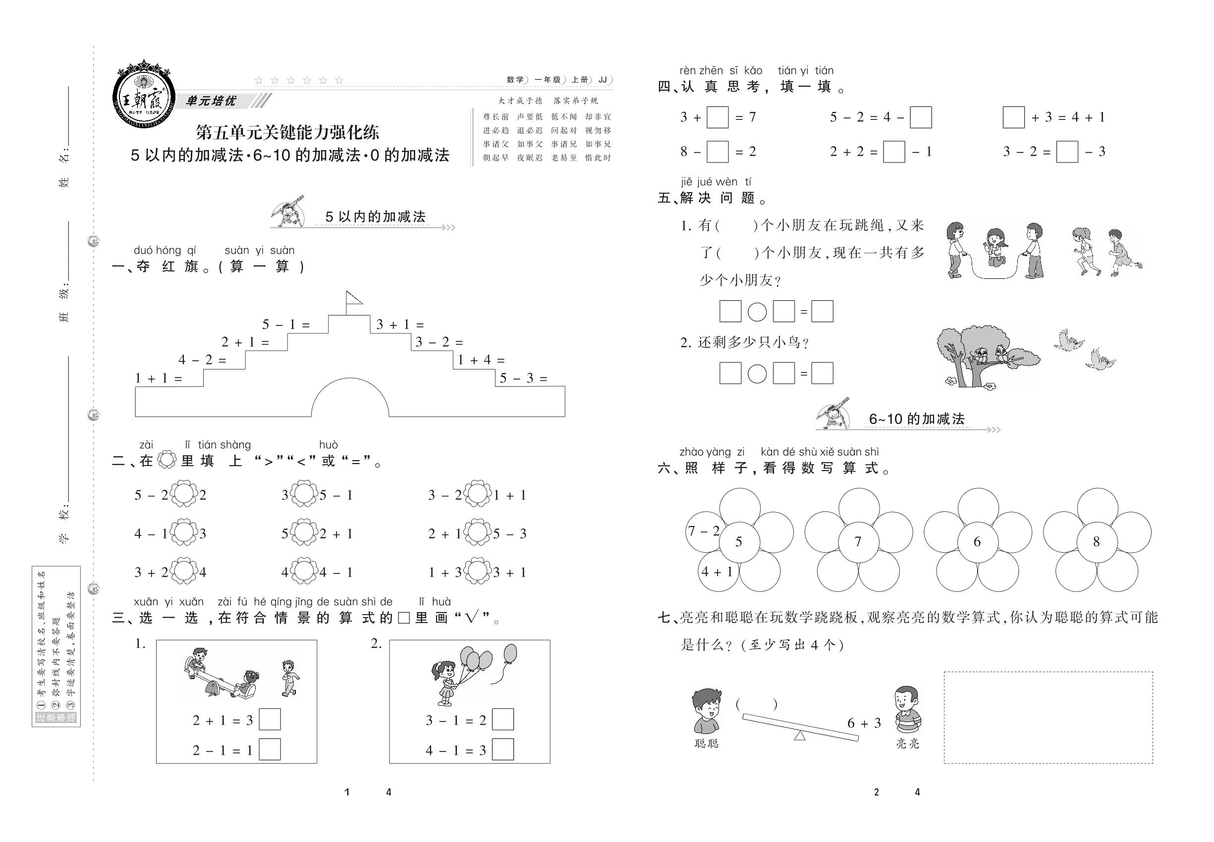 2020上册一年级数学冀教版 第五单元 关键能力强化练