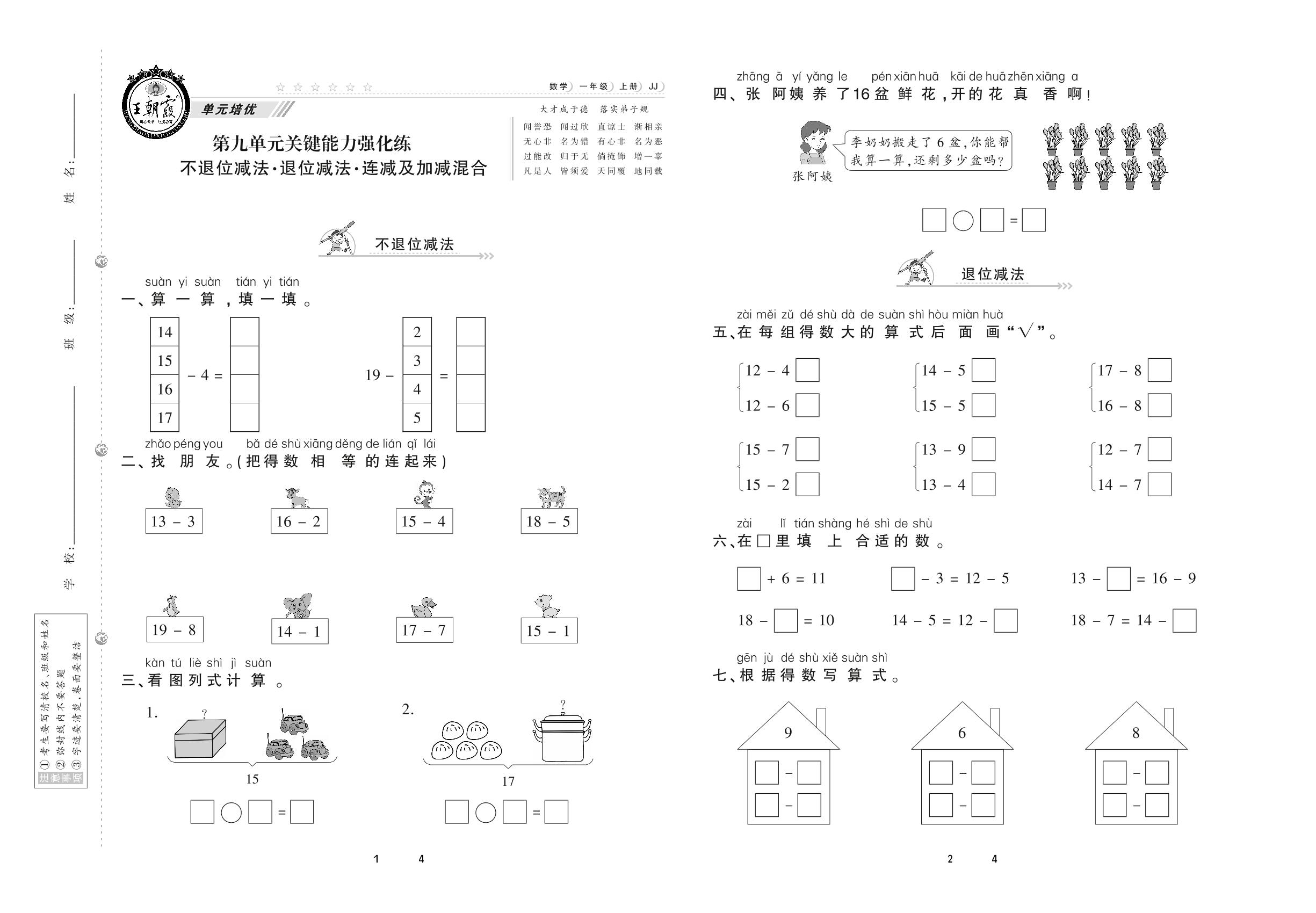 2020上册一年级数学冀教版 第九单元 关键能力强化练