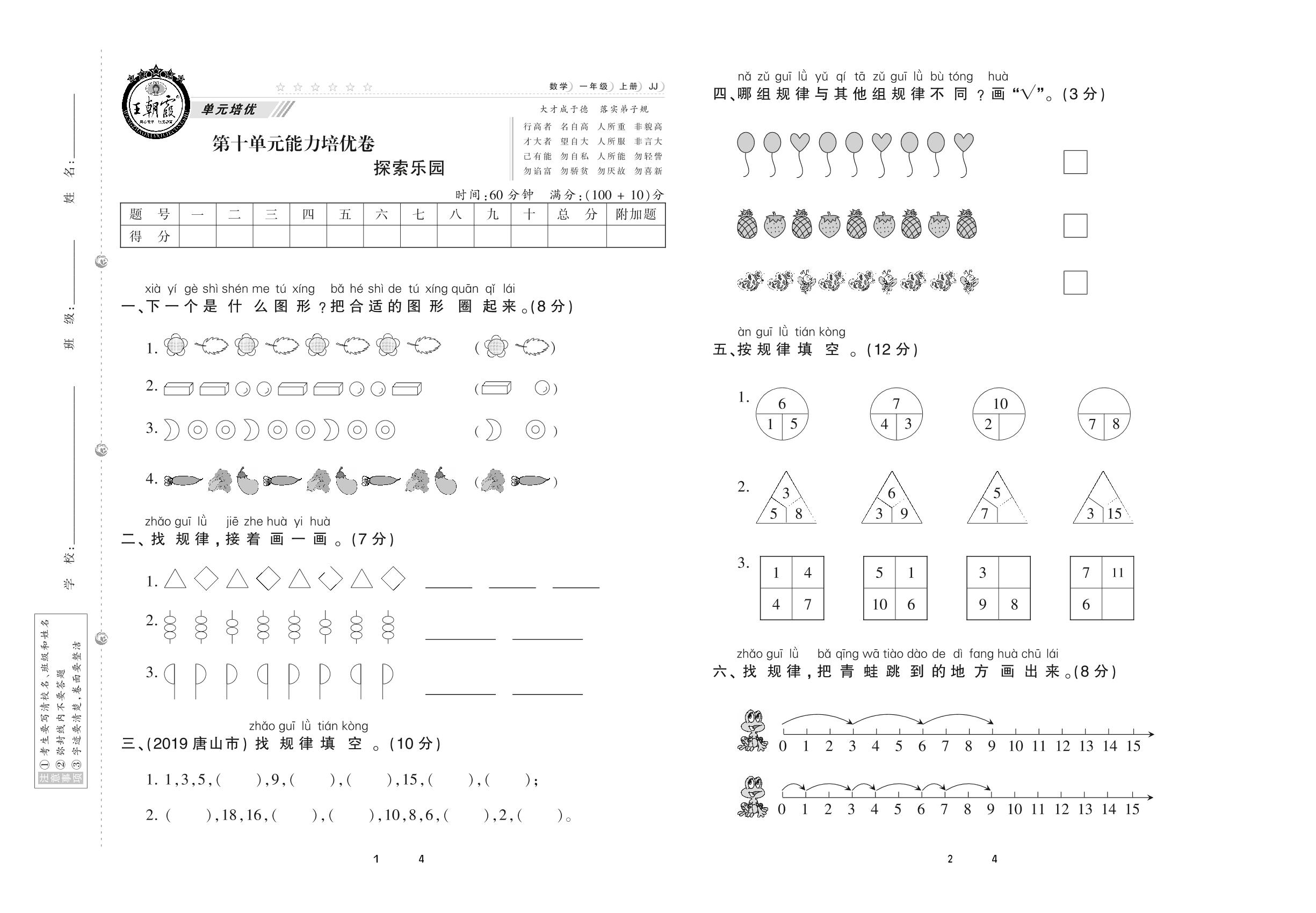 2020上册一年级数学冀教版 第十单元 能力培优卷