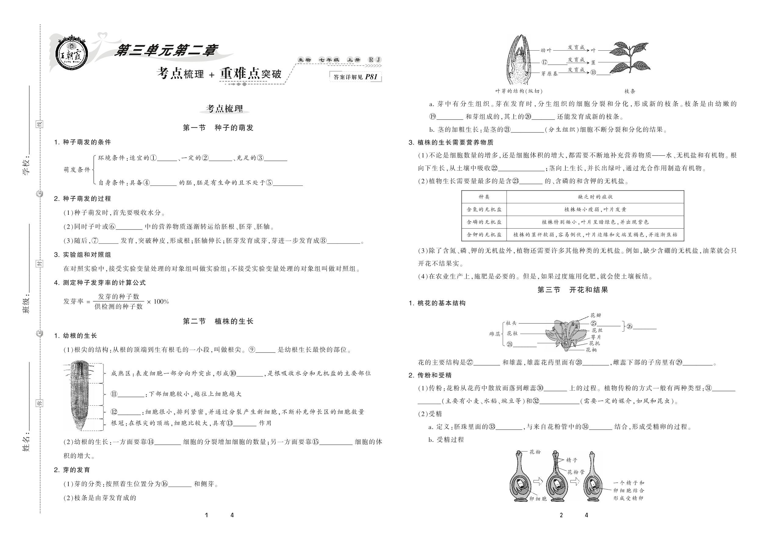 2020上册七年级生物人教版 第三单元第二章 考点梳理 + 重难点突破