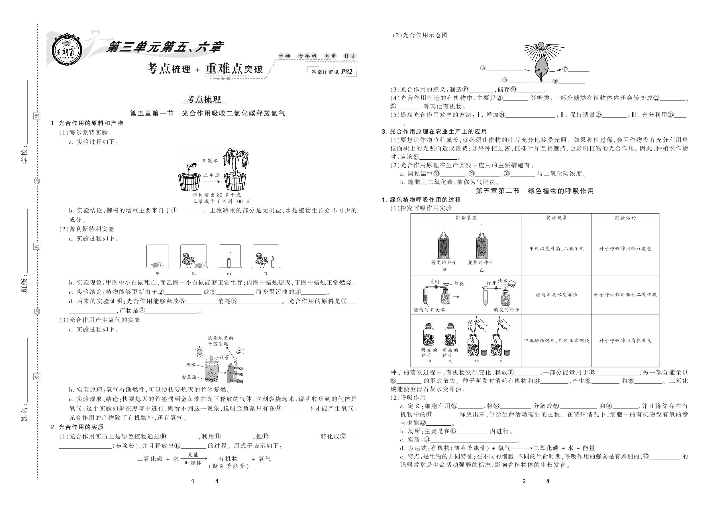 2020上册七年级生物人教版 第三单元第五、六章 考点梳理 + 重难点突破
