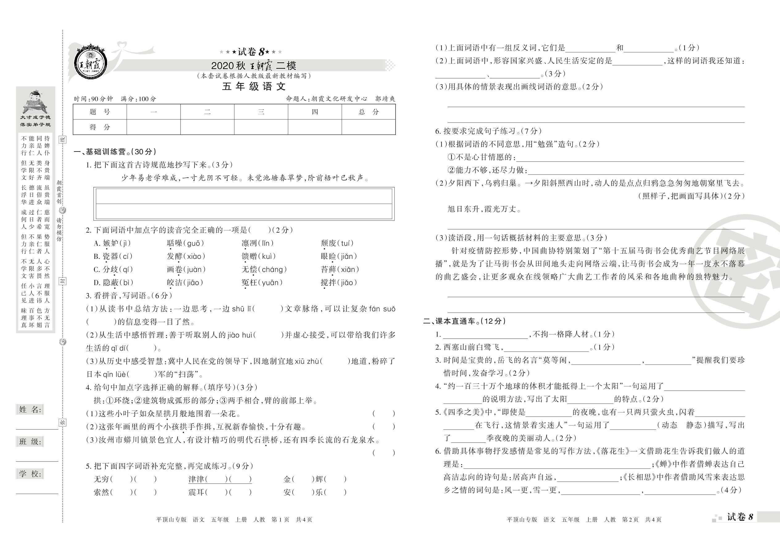 王朝霞期末模拟卷五年级上册语文(人教版)_R210801184514【8】