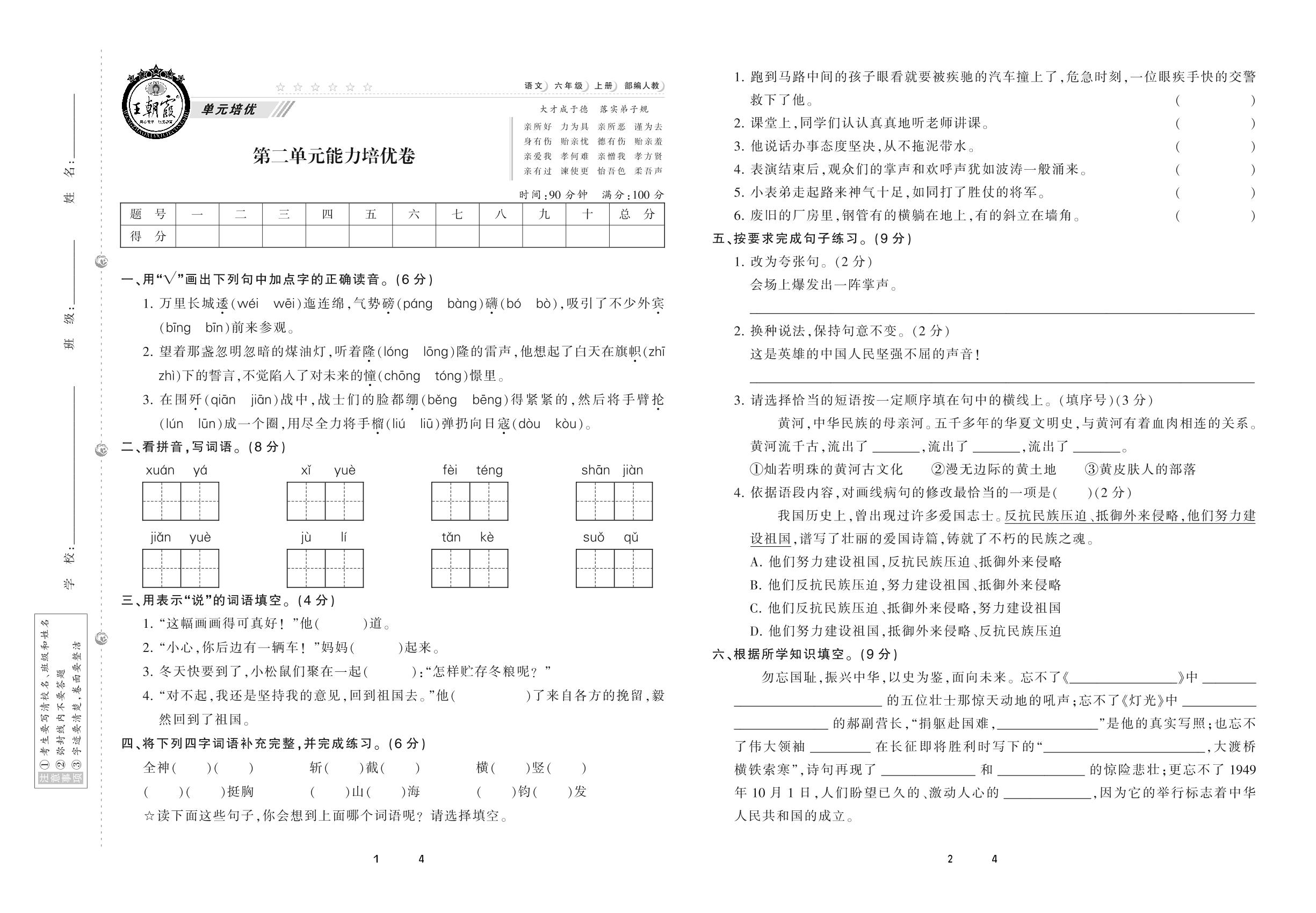 2020上册六年级语文人教版 第二单元 能力培优卷