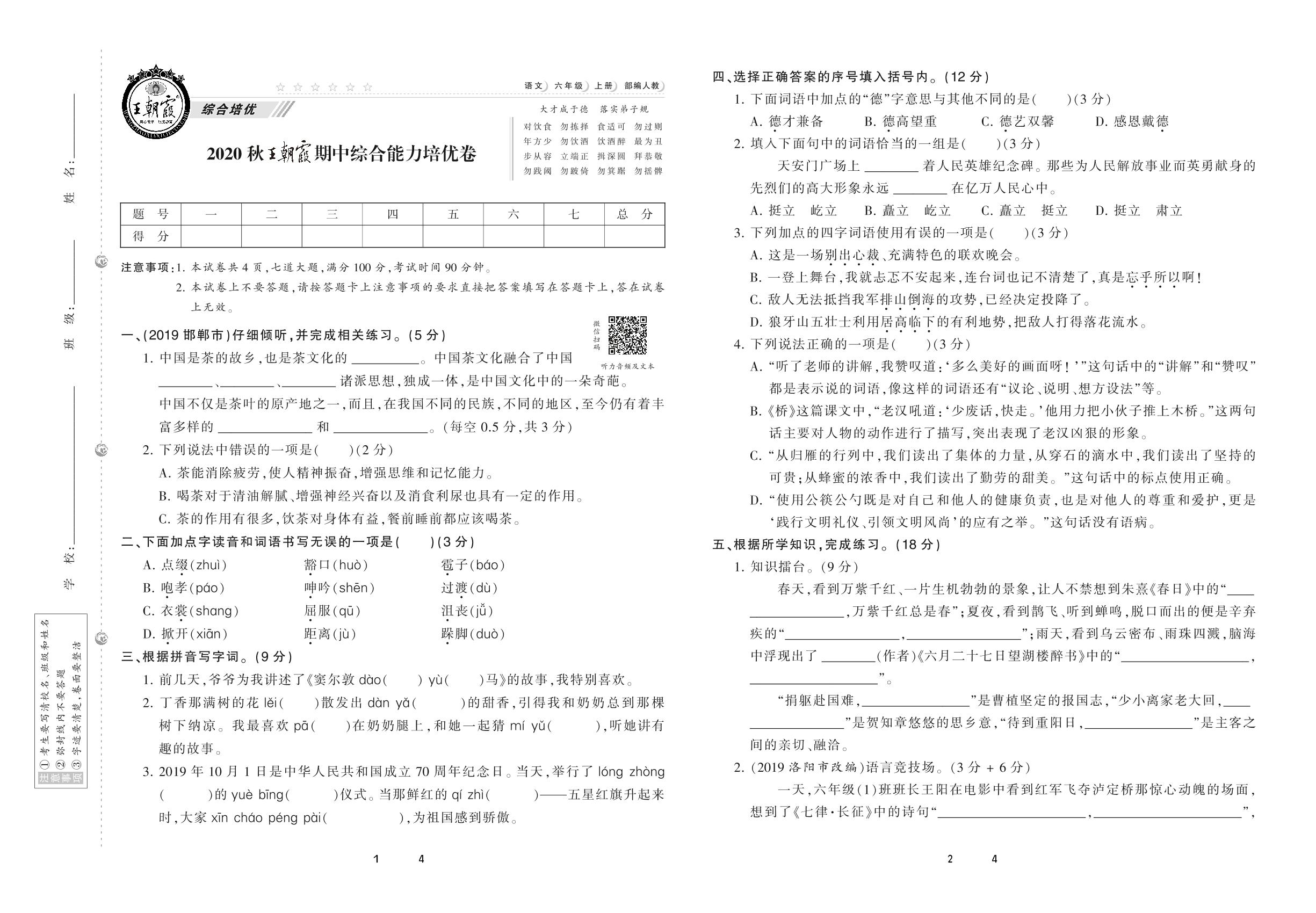 六年级语文人教版上册单元卷