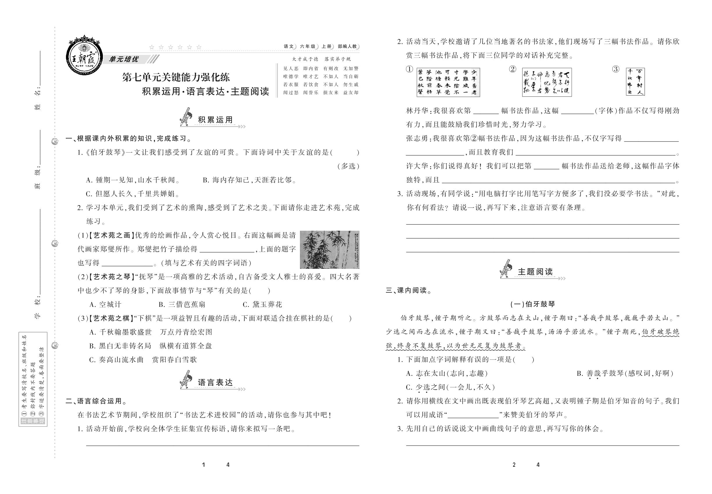 2020上册六年级语文人教版 第七单元 关键能力强化练
