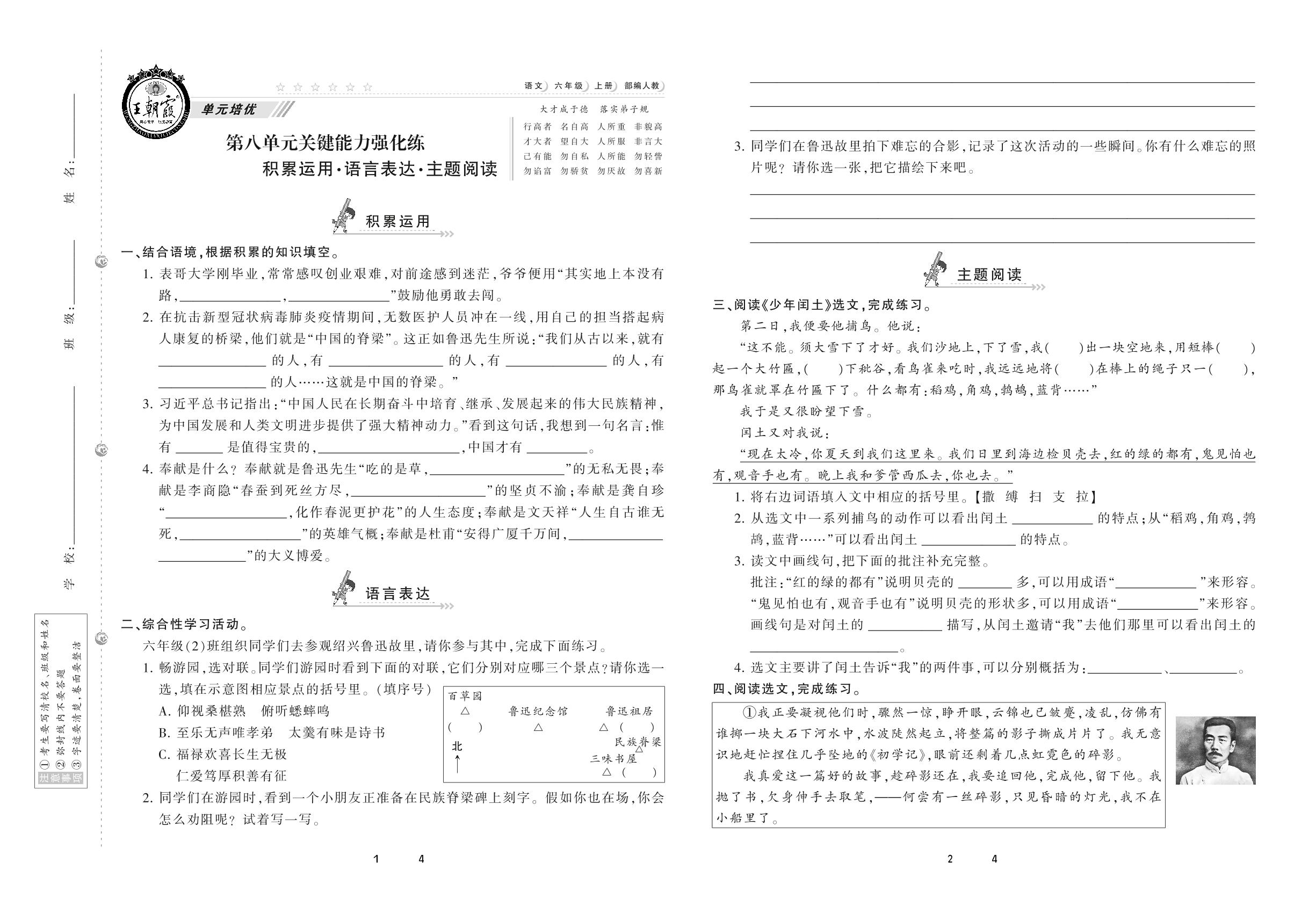 2020上册六年级语文人教版 第八单元 关键能力强化练