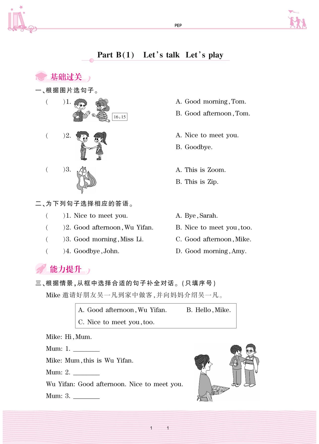 2020上册三年级英语PEP版 Unit 2—Part B(1) Let’s talk Let’s play
