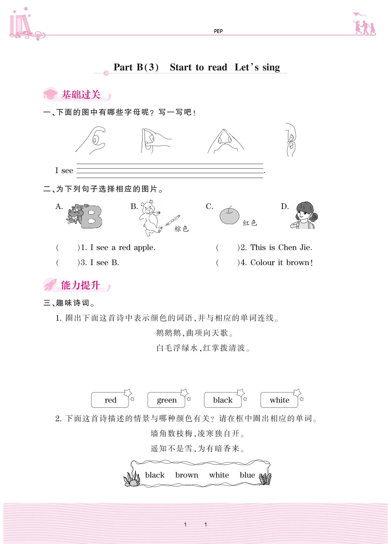 2020上册三年级英语PEP版 Unit 2—Part B(3) Start to read Let’s sing
