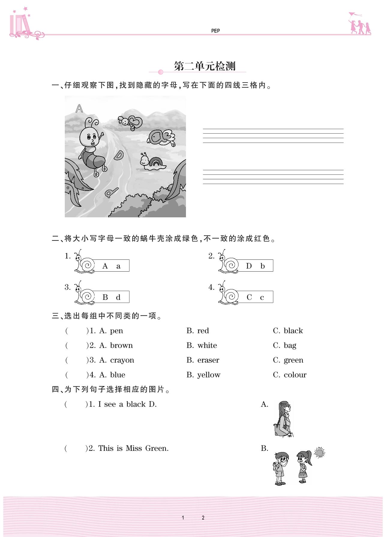 2020上册三年级英语PEP版 Unit 2—第二单元检测