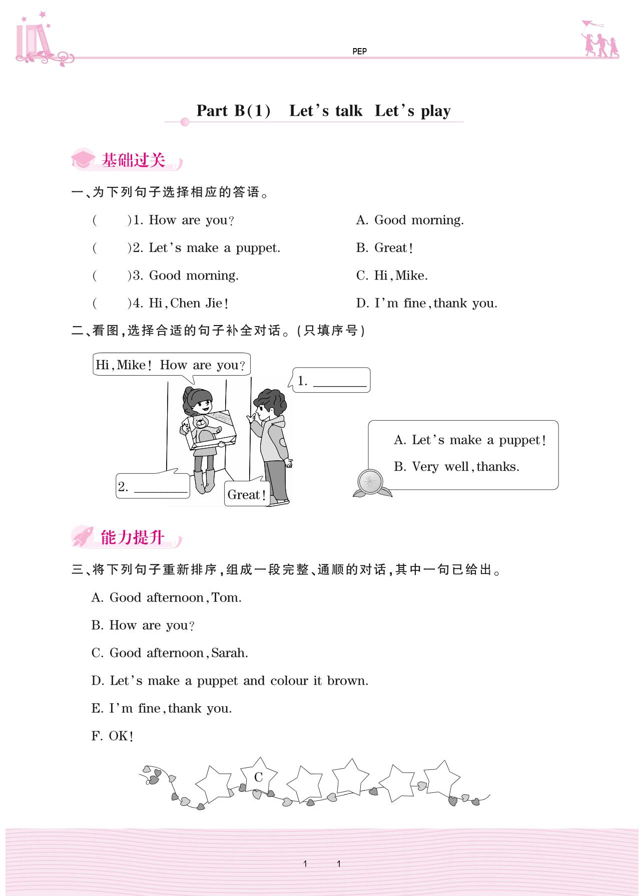 2020上册三年级英语PEP版 Unit 3—Part B(1) Let’s talk Let’s play