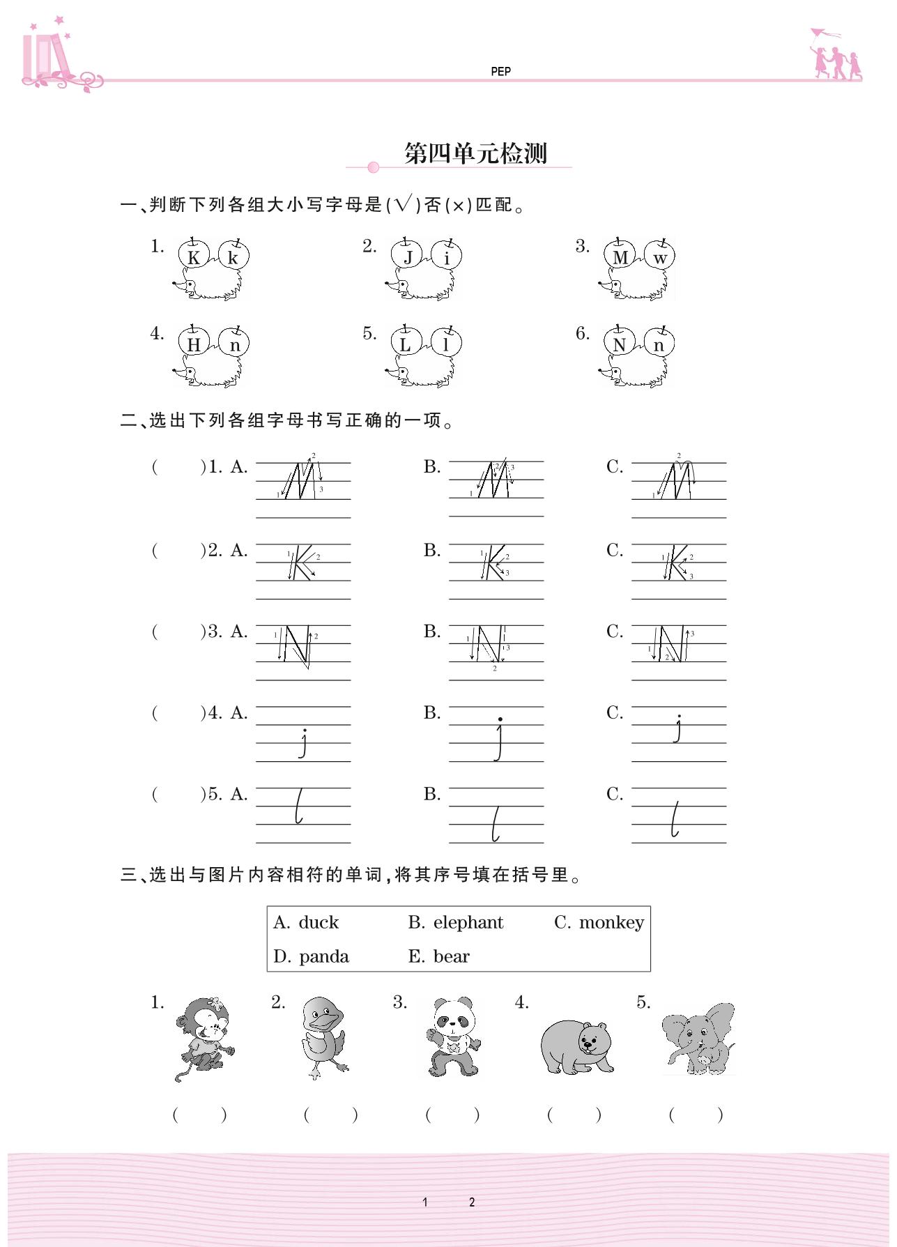 2020上册三年级英语PEP版 Unit 4—第四单元检测