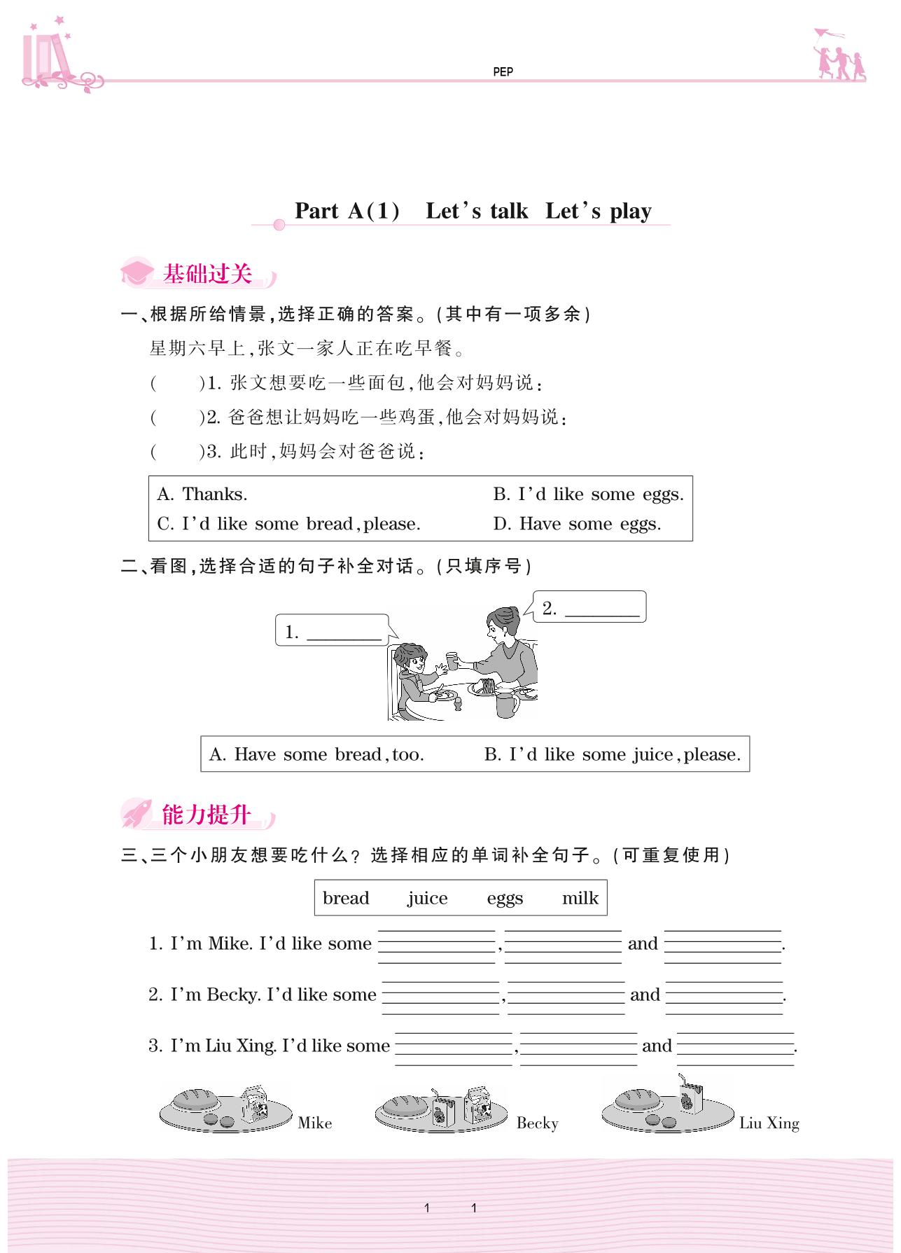 三年级英语人教PEP版(三起始)上册课时作业