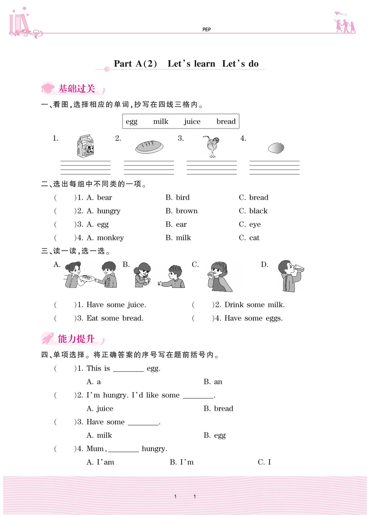 三年级英语人教PEP版(三起始)上册课时作业