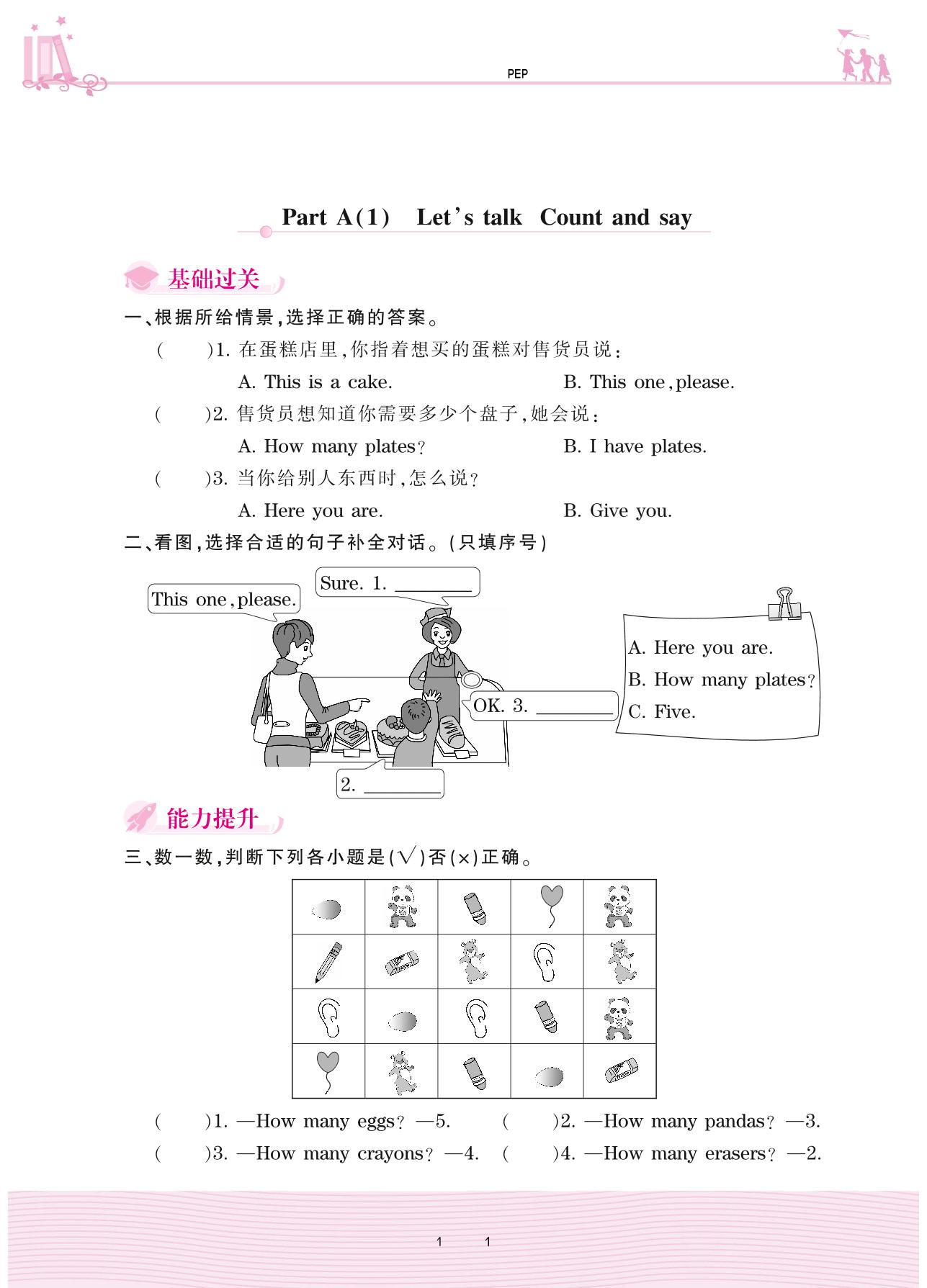2020上册三年级英语PEP版 Unit 6—Part A(1) Let’s talk Count and say