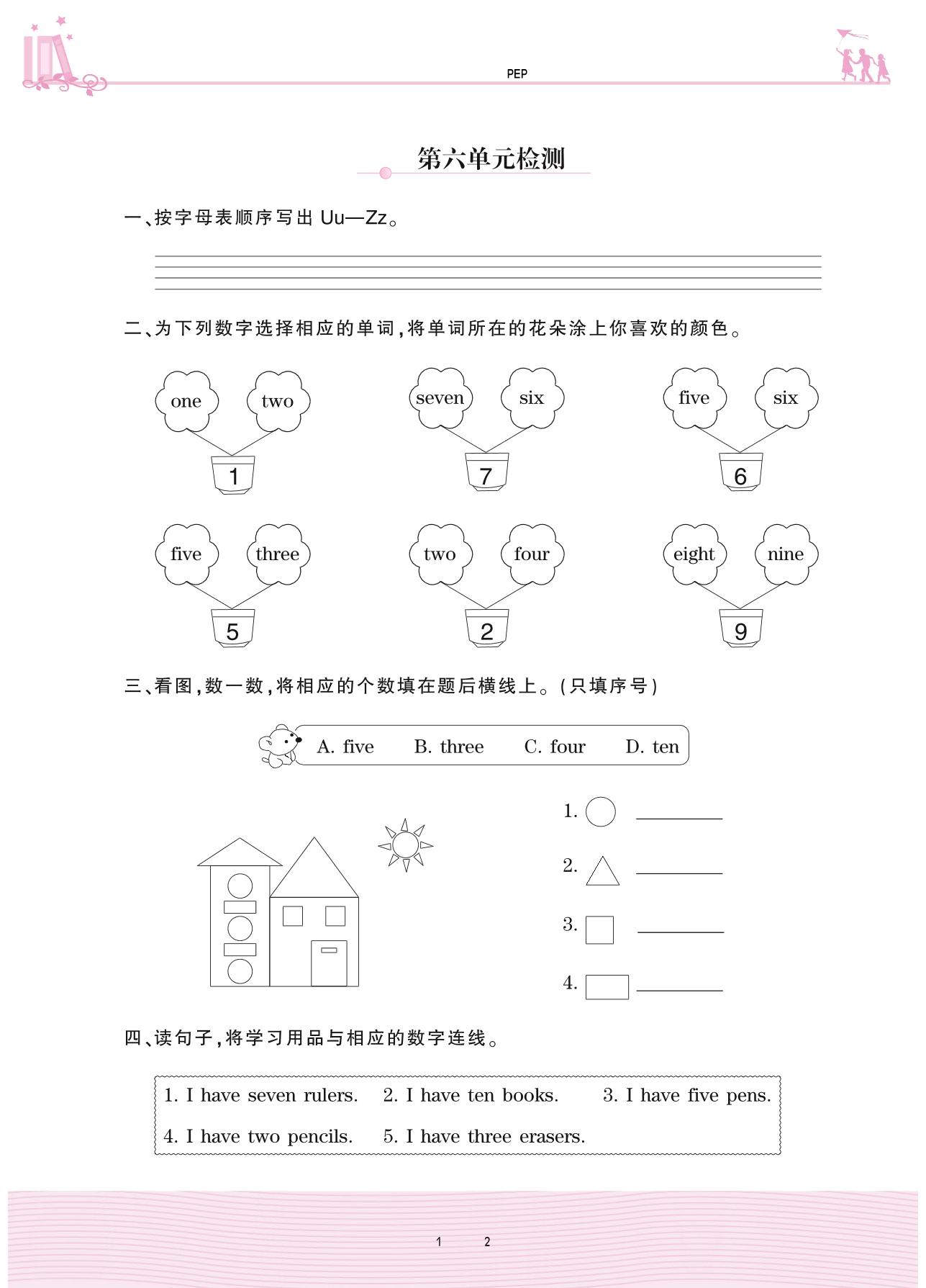 2020上册三年级英语PEP版 Unit 6—第六单元检测