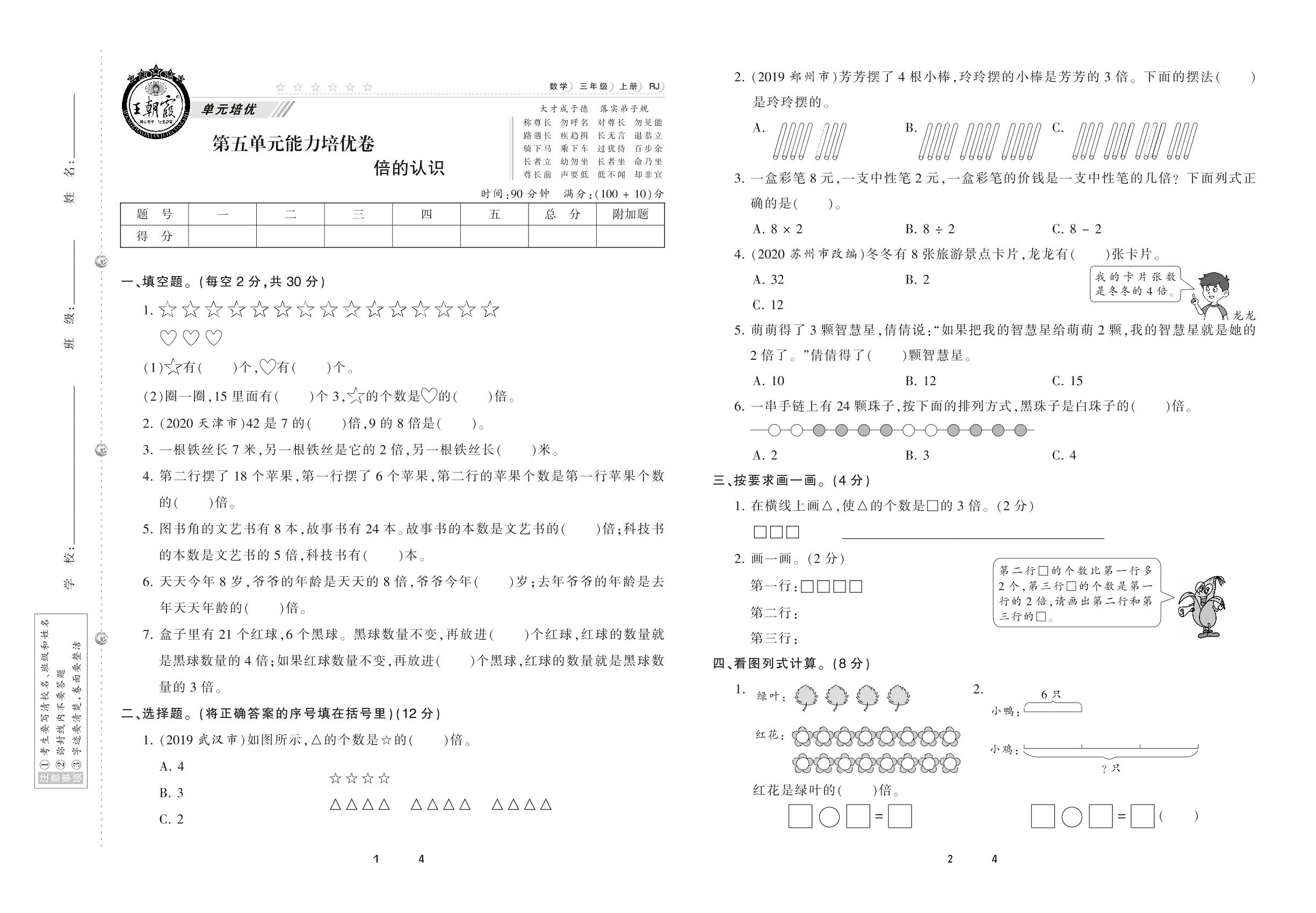 2020上册三年级数学人教版 第五单元 能力培优卷