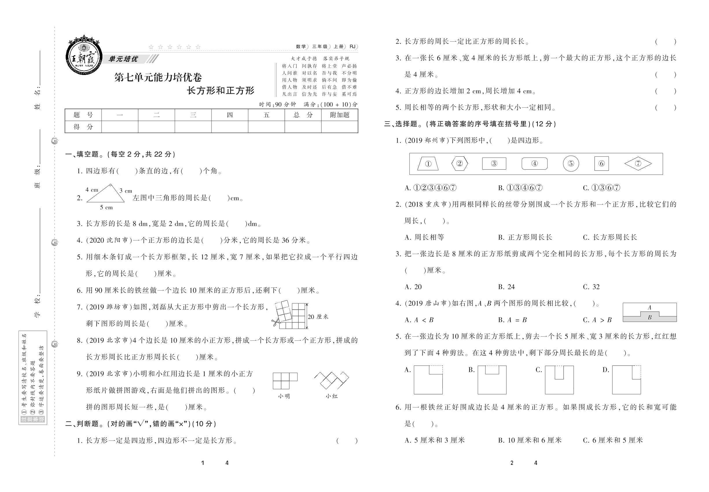 2020上册三年级数学人教版 第七单元 能力培优卷
