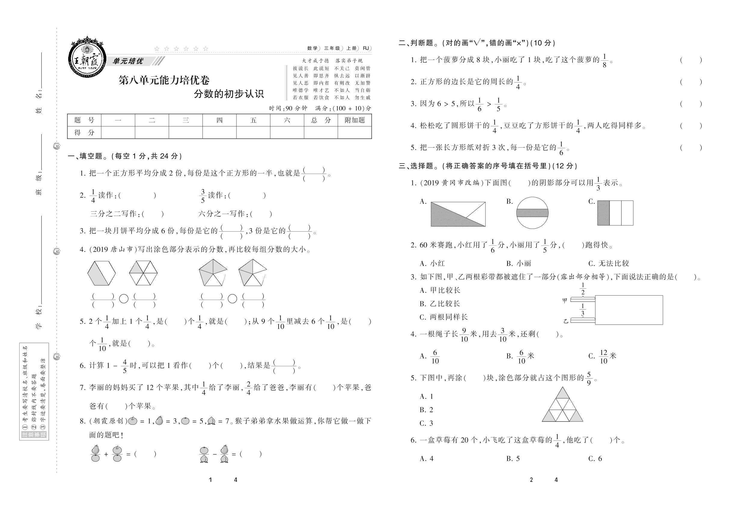 2020上册三年级数学人教版 第八单元 能力培优卷