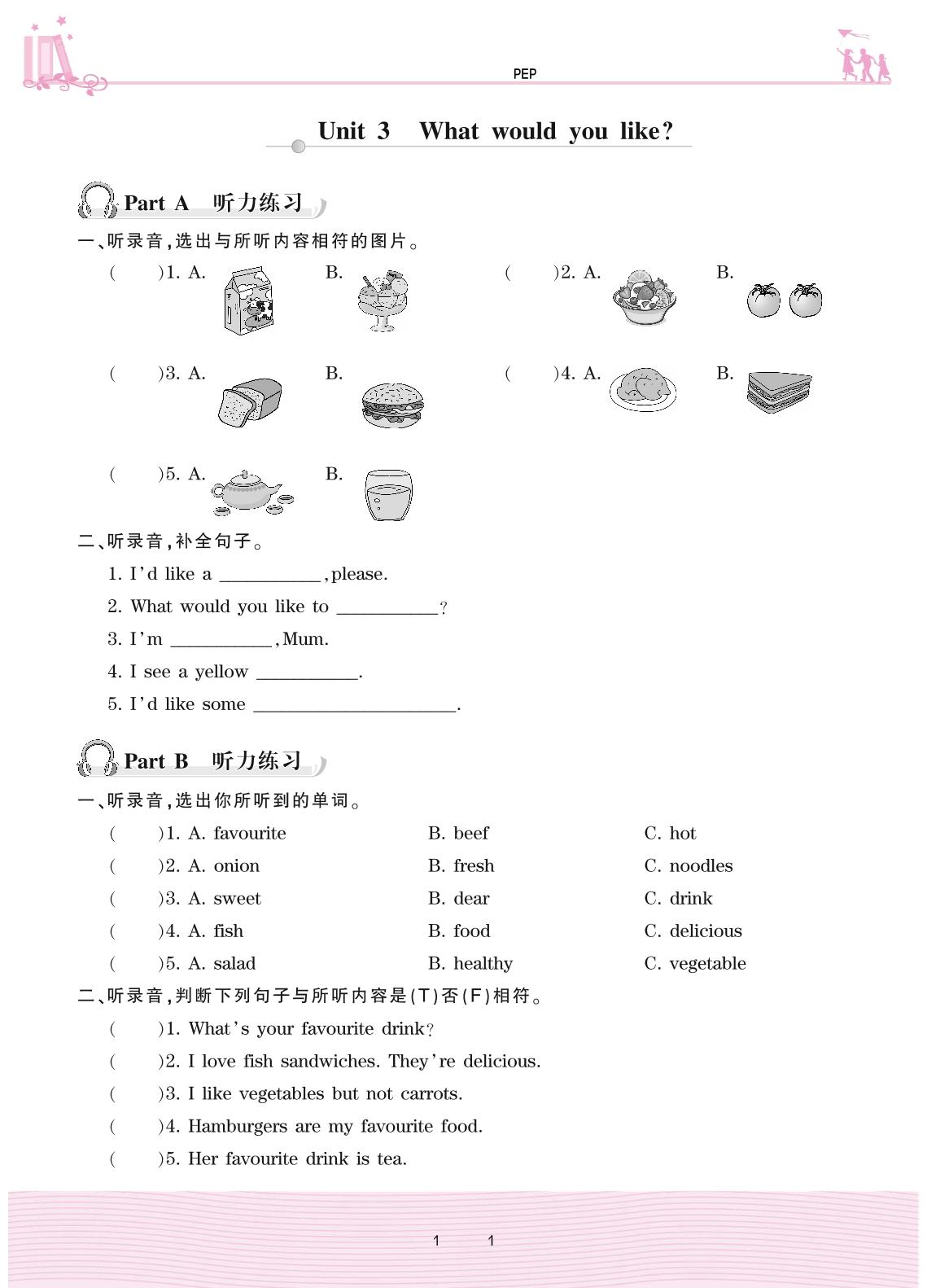 2020上册五年级英语PEP版 Unit 3 What would you like?