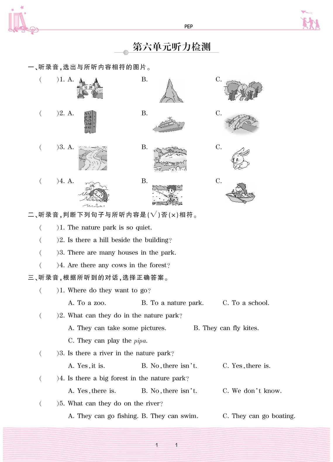 2020上册五年级英语PEP版 第六单元听力检测