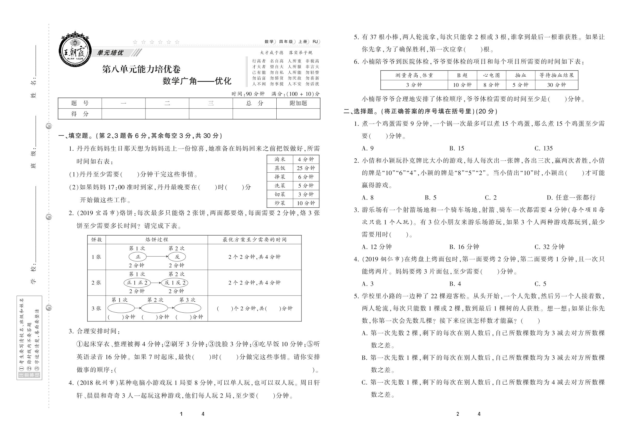 2020上册四年级数学人教版 第八单元 能力培优卷